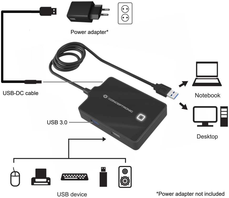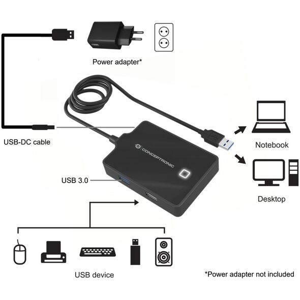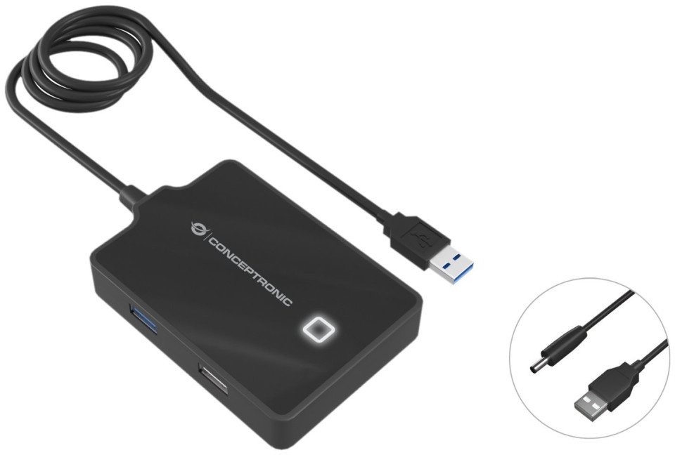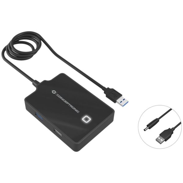 HUB USB Conceptronic CONCEPTRONIC USB-Hub 4-Port 3.0 ->1x3.0 3x2.0 χωρίς τροφοδοτικό μαύρο