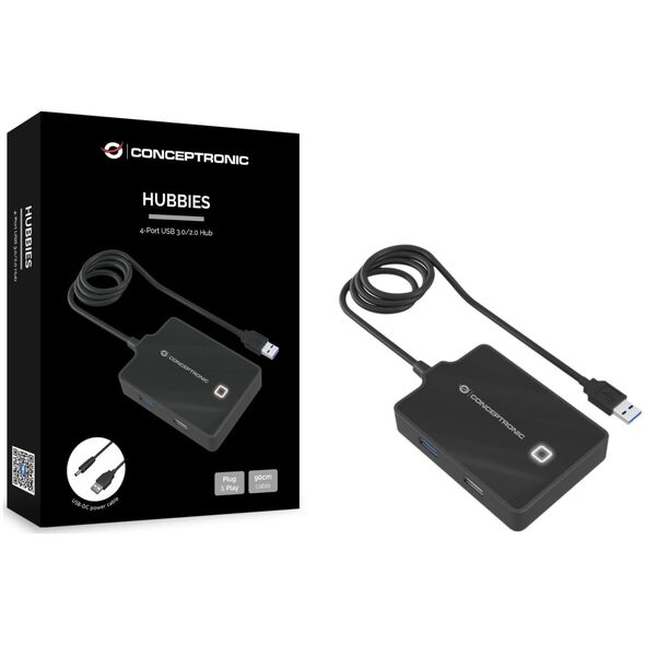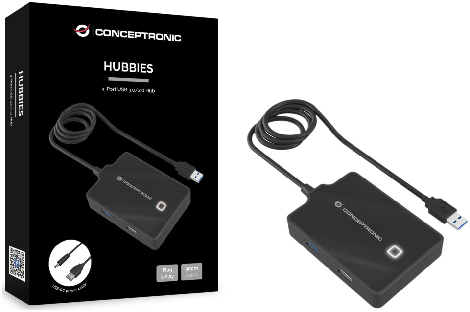 Conceptronic HUBBIES10B. Διεπαφή κεντρικού υπολογιστή: USB 3.2 Gen 1 (3.1 Gen 1) Type-A, Διασυνδέσεις Hub: USB 2.0, USB 3.2 Gen 1 (3.1 Gen 1) Type-A. Πραγματικός ρυθμός μεταφοράς δεδομένων: 5000 Mbit/s, Χρώμα προϊόντος: Μαύρο, Μήκος καλωδίου: 0,9 m Πλάτος προϊόντος: 87 mm, Βάθος προϊόντος: 55 mm, Ύψος προϊόντος: 15 mm. Ποσότητα ανά συσκευασία: 1 τεμ., Πλάτος συσκευασίας: 107 mm, Βάθος συσκευασίας: 18 mm. Καλώδια: USB