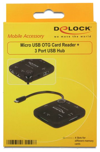 Αυτή η συσκευή ανάγνωσης καρτών + διανομέας της Delock χρησιμοποιείται για την ανάγνωση και εγγραφή καρτών μνήμης μέσω της θύρας Micro USB OTG ενός smartphone ή tablet. Επιπλέον, αυτή η συσκευή είναι εξοπλισμένη με τρεις θηλυκές θύρες USB Type A, χάρη στις οποίες μπορείτε να συνδέσετε, χρησιμοποιώντας μια τυπική αρσενική θύρα USB Type A, π.χ. σκληρό δίσκο, κάρτα μνήμης, πληκτρολόγιο, ποντίκι κ.λπ. smartphone ή tablet με υποστήριξη OTG.{Ύψος} 16 mm . {Ύψος} 16 mm . {Ύψος} 16 mm . {Ύψος} 16 mm . {Αριθμός θυρών USB-A} 3 . {Αριθμός θυρών USB-A} 3 . {Αριθμός θυρών USB-A} 3 . {Αριθμός θυρών USB-A} 3 . {Type} Ενεργό (απαιτεί επιπλέον τροφοδοτικό) . {Type} Ενεργό (απαιτεί επιπλέον τροφοδοτικό) . {Type} Ενεργό (απαιτεί επιπλέον τροφοδοτικό) . {Type} Ενεργό (απαιτεί επιπλέον τροφοδοτικό) . {Μήκος} 66 mm . {Μήκος} 66 mm . {Μήκος} 66 mm . {Μήκος} 66 mm . {Πλάτος} 66 χλστ. {Πλάτος} 66 χλστ. {Πλάτος} 66 χλστ. {Πλάτος} 66 χλστ. {Additional ports} 1x SD . {Additional ports} 1x SD . {Additional ports} 1x SD . {Additional ports} 1x SD . {Πρόσθετες θύρες} 1x M2 . {Πρόσθετες θύρες} 1x M2 . {Πρόσθετες θύρες} 1x M2 . {Πρόσθετες θύρες} 1x M2 . {Plug} microUSB OTG. {Plug} microUSB OTG. {Plug} microUSB OTG. {Plug} microUSB OTG. {Additional ports} 1x microSD . {Additional ports} 1x microSD . {Additional ports} 1x microSD . {Additional ports} 1x microSD . {Additional ports} 1x SDHC . {Additional ports} 1x SDH