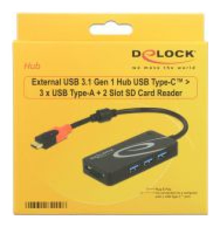 Αυτός ο διανομέας USB της Delock μπορεί να συνδεθεί σε υπολογιστή μέσω θύρας USB Type-C™. Σας επιτρέπει να επεκτείνετε τον υπολογιστή σας με τρεις υποδοχές USB Type-A, καθώς και δύο υποδοχές για κάρτες μνήμης SD και Micro SD. Εάν ο διανομέας είναι συνδεδεμένος στον υπολογιστή μέσω της υποδοχής USB 3.1, το μέγιστο ρεύμα των 900 mA μοιράζεται μεταξύ των θυρών USB και της συσκευής ανάγνωσης καρτών. Εάν είναι απαραίτητο, μπορείτε να συνδέσετε μια προαιρετική πηγή ρεύματος ή καλώδιο ρεύματος στην πρίζα. {Type} Ενεργό . {Type} Ενεργό . {Type} Ενεργό . {Αριθμός θυρών USB-A} 3 . {Αριθμός θυρών USB-A} 3 . {Αριθμός θυρών USB-A} 3 . {Additional ports} 1x SD . {Additional ports} 1x SD . {Additional ports} 1x SD . {Plug}USB-C . {Plug}USB-C . {Plug}USB-C . {Additional ports} 1x microSD . {Additional ports} 1x microSD . {Additional ports} 1x microSD . {Type} Standard . {Type} Standard . {Type} Standard . {Πλάτος} 35 mm . {Πλάτος} 35 mm . {Πλάτος} 35 mm . {Χρώμα} Μαύρο. {Χρώμα} Μαύρο. {Χρώμα} Μαύρο. {Μήκος} 35 mm . {Μήκος} 35 mm . {Μήκος} 35 mm . {Ταχύτητα μετάδοσης δεδομένων} 5 Gb/s. {Ταχύτητα μετάδοσης δεδομένων} 5 Gb/s. {Ταχύτητα μετάδοσης δεδομένων} 5 Gb/s. {Πρότυπο θύρας USB} 3.1 Gen1. {Πρότυπο θύρας USB} 3.1 Gen1. {Πρότυπο θύρας USB} 3.1 Gen1. {Ύψος} 9 mm . {Ύψος} 9 mm . {Ύψος} 9 mm