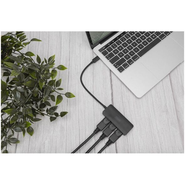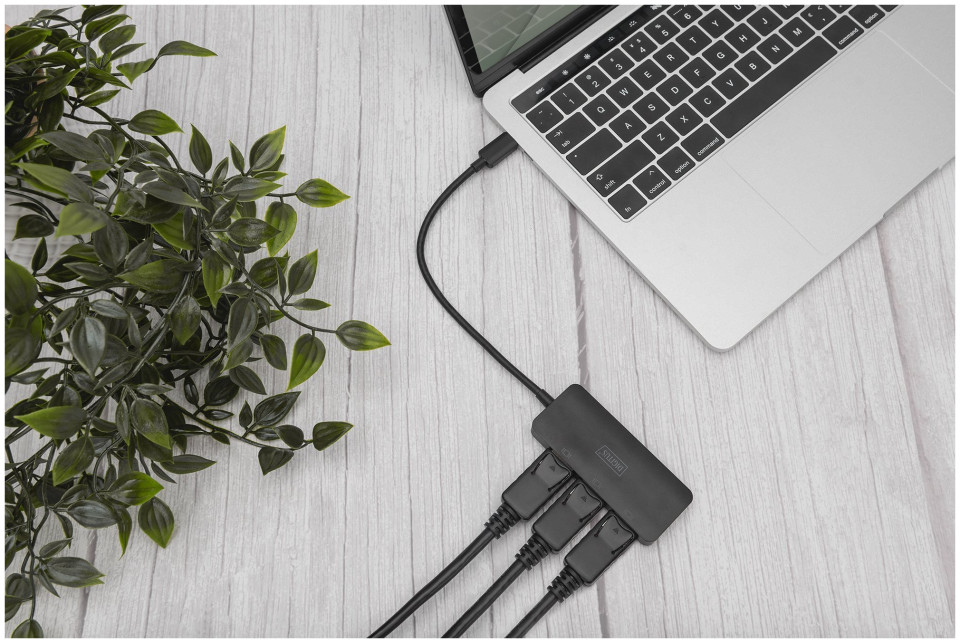 Διανομέας MST για σύνδεση έως και 3 εξωτερικών οθονών μέσω εξόδου βίντεο φορητού υπολογιστή/Η/Υ - σας επιτρέπει να αυξήσετε την παραγωγικότητα εργάζεστε με πολλαπλές οθόνες - Υποστήριξη DP 1,4 (λειτουργία Alt) με μέγιστο 8,1 Gbps ανά κανάλι, μέγιστο 32,4 Gbps σε 4 κανάλια - Υποστήριξη για λειτουργικό σύστημα Windows (11, 10) - Αναλύσεις 3 εξωτερικών οθονών - Λειτουργία MST: 1 x 4K / 60 Hz + 2 x 4K / 30 Hz - Αναλύσεις 2 εξωτερικών οθονών - Λειτουργία MST: μέγιστο 2 x 4K / 60 Hz - Τροφοδοτείται από υποδοχή USB-C™ - Τροφοδοτείται από το BUS - Δεν χρειάζονται προγράμματα οδήγησης ή λογισμικό - πραγματοποιείται διαμόρφωση. μέσω ρυθμίσεων οθόνης στο λειτουργικό σύστημα Windows - Υποστηρίζει 3 λειτουργίες εμφάνισης: Κατοπτρισμός οθόνης (1 σήμα διπλό σε 3 οθόνες), επέκταση επιφάνειας εργασίας (3 σήματα σε 3 οθόνες), διαχωρισμός (1 διαχωρισμός σήματος σε 3 οθόνες) - Υποστήριξη HDCP 2.2 / 1.4 και HDR (High Dynamic Range) - Υποστήριξη MST (Multi Stream Transport) και SST (Single Stream Transport) Ο διανομέας DIGITUS® MST χρησιμοποιεί τεχνολογία Multi Stream Transport (λειτουργία DisplayPort™ 1.2), η οποία επιτρέπει τη μετάδοση πολλών σημάτων AV μέσω ένα καλώδιο. Αυτό σας επιτρέπει να χρησιμοποιείτε πολλές οθόνες συνδεδεμένες μέσω μιας εγκατάστασης διανομέα MST. Το MST Hub μπορεί να διανείμει διαφορετικές ροές βίντεο σε τρεις συνδεδεμένες οθόνες. Βασικά, υποστηρίζονται τρεις λειτουργίες αναπαραγωγής: Screen mirroring (1 σήμα αντιγράφεται σε 3 οθόνες), επέκταση επιφάνειας εργασίας (3 σήματα σε 3 οθόνες), split (1 διαχωρισμός σήματος σε 3 οθόνες. • 1 x είσοδος USB-C™ • 3 x έξοδος DisplayPort • Υποστηρίζει DP 1.4 (Alt mode) με μέγιστο 8,1 Gbps ανά κανάλι, μέγιστο 32,4 Gbps σε 4 κανάλια Λειτουργικό σύστημα Windows (11, 10) • Αναλύσεις 3 εξωτερικών οθονών - Λειτουργία MST: μέγ. 1 x 4K / 30 Hz • Αναλύσεις 2 εξωτερικών οθονών - Λειτουργία MST: μέγ • Τροφοδοσία μέσω υποδοχής USB-C™ – Τροφοδοτείται από BUS • Δεν απαιτούνται προγράμματα οδήγησης ή λογισμικό – η διαμόρφωση πραγματοποιείται μέσω ρυθμίσεων οθόνης σε λειτουργικό σύστημα Windows • Υποστηρίζει 3 λειτουργίες προβολής: Screen mirroring (1 σήμα διπλό σε 3 οθόνες), επέκταση επιφάνειας εργασίας (3 σήματα σε 3 οθόνες), διαχωρισμός (1 διαχωρισμός σήματος σε 3 οθόνες) • HDCP 2.2 και 1.4 • Υποστήριξη βίντεο HDR (Υψηλή Dynamic Range) • Υποστηρίζει MST (Multi Stream Transport) και SST (Single Stream Transport) • Σώμα: ABS πλαστικό • Θερμοκρασία λειτουργίας: 0-45° • Κατανάλωση ενέργειας σε κατάσταση αναμονής: περίπου 1 W • Διαστάσεις: L 25,2 x W 3,6 x H 1,15 cm • Βάρος: 51 g • Χρώμα: μαύρο • Σημειώσεις : • Για να επιτύχετε τις παραπάνω αναλύσεις, το Ο υπολογιστής (host) πρέπει να υποστηρίζει το πρότυπο DP 1.4 (λειτουργία Alt). Εάν ο υπολογιστής σας υποστηρίζει μόνο DP 1.2, οι αντίστοιχες αναλύσεις θα μειωθούν λόγω περιορισμών εύρους ζώνης • Οι παραπάνω διαμορφώσεις ανάλυσης παρέχονται ως θεωρητικά επεξηγηματικά δεδομένα και οι πραγματικές αναλύσεις εξαρτώνται από τον συνδεδεμένο κεντρικό υπολογιστή και τις οθόνες • Για να χρησιμοποιήσετε το πλήρες εύρος λειτουργιών, παρακαλούμε βεβαιωθείτε ότι η συσκευή σας (κάρτα γραφικών) υποστηρίζει DP 1.4 • Όταν χρησιμοποιείτε κάρτα γραφικών με διεπαφή DisplayPort 1.1, ο διανομέας MST λειτουργεί ως διαχωριστής σήματος και εμφανίζει ένα αντίγραφο κατοπτρισμός από την πηγή βίντεο σε όλες τις συνδεδεμένες οθόνες • Η λειτουργικότητα ενδέχεται να είναι περιορισμένη - ανάλογα με τις προδιαγραφές της συσκευής και το λειτουργικό σύστημα • Οι διανομείς MST δεν σας επιτρέπουν να αυξήσετε τον αριθμό των οθονών που υποστηρίζονται από την κάρτα γραφικών. 