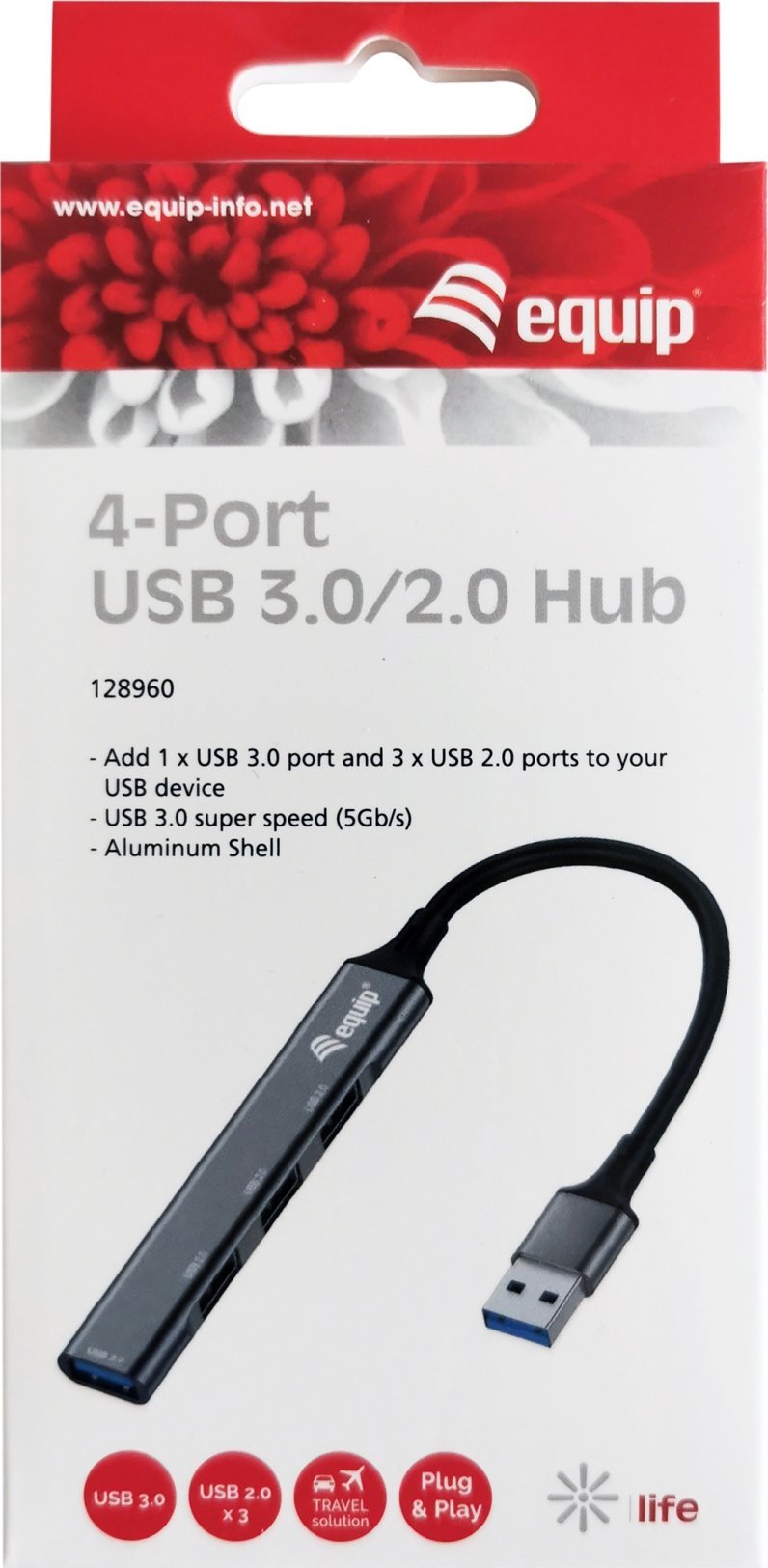 HUB USB Equip Equip USB-Hub 4-Port 3.0 ->1x3.0 3x2.0 5Gbps o.Netzteil gr