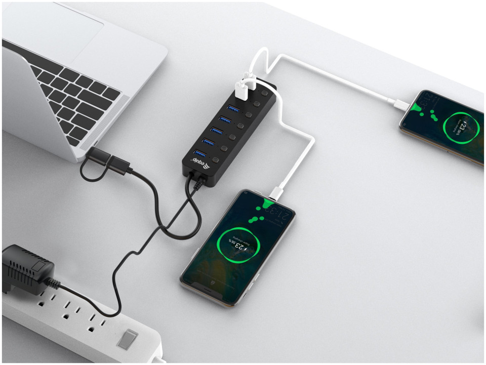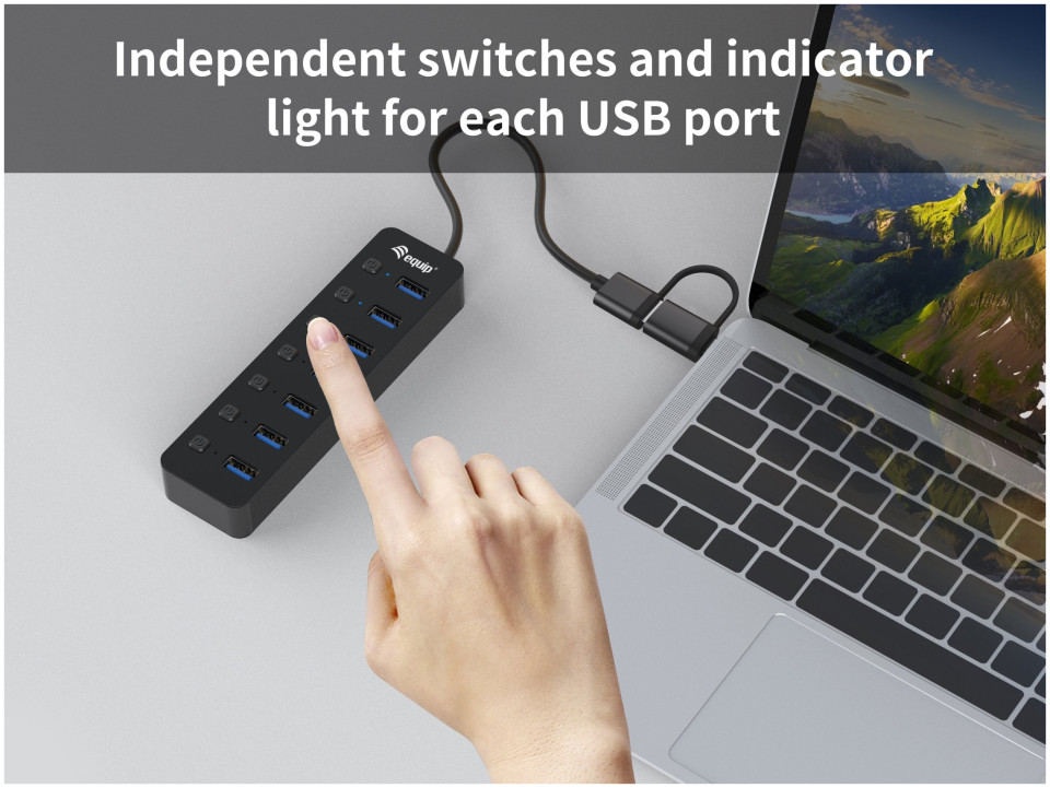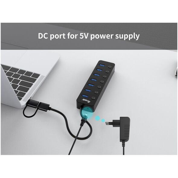 HUB USB Equip Equip USB-Hub 7-Port 3.2 ->7x3.2 5Gbps μ.Τροφοδοτικό μαύρο
