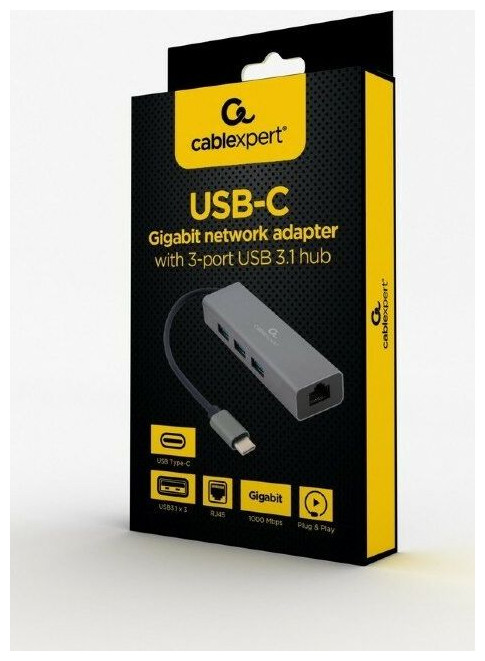 Κάρτα δικτύου Gigabit USB Type-C με διανομέα USB 3 θυρών