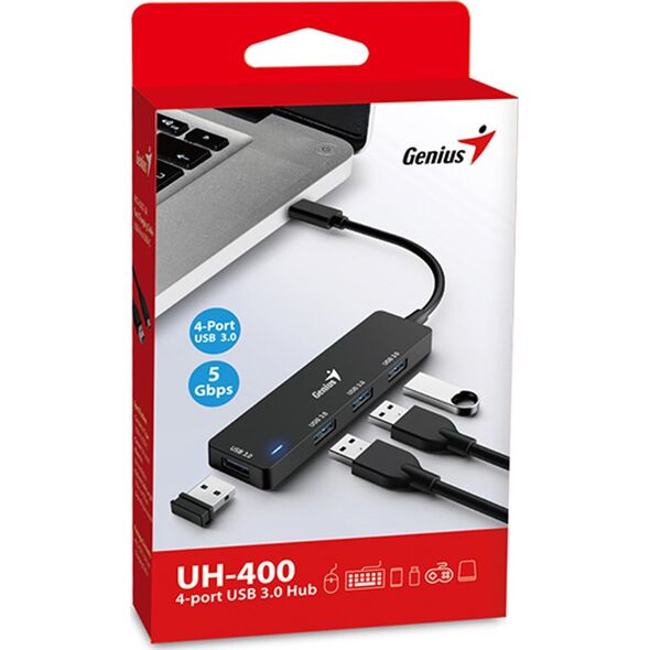 HUB USB Genius USB (3.0) hub 4-port, UH-400, μαύρο, Genius