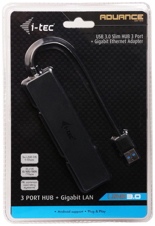 Η σειρά ADVANCE i-tec είναι αξεσουάρ κορυφαίας κατηγορίας. Αυτά τα προϊόντα επιτρέπουν τη χρήση προηγμένων τεχνολογιών. Διακρίνονται από μοντέρνα εμφάνιση και αποκλειστική συσκευασία Συνδυάζοντας τις λειτουργίες ενός παθητικού USB 3.0 HUB με έναν προσαρμογέα Gigabit Ethernet. Η συσκευή σάς επιτρέπει να συνδέσετε γρήγορα και εύκολα αξεσουάρ USB σε φορητό υπολογιστή, tablet ή υπολογιστή χρησιμοποιώντας ένα μόνο καλώδιο USB και να παρέχετε άμεση πρόσβαση στο δίκτυο και στο Internet μέσω σύνδεσης Gigabit Ethernet. Οι συμπαγείς διαστάσεις και το μικρό βάρος καθιστούν το HUB ιδανικό αξεσουάρ για άτομα που χρησιμοποιούν φορητό υπολογιστή ενώ ταξιδεύουν Το HUB διαθέτει 3 θύρες USB 3.0 με τη λειτουργία Plug & Play και δυνατότητα φόρτισης μέσω USB - το HUB ανιχνεύει αυτόματα τις συσκευές που συνδέονται μέσω του USB. θύρα που απαιτούν φόρτιση. Η υποδοχή USB 3.0 είναι ιδιαίτερα σημαντική για τη βέλτιστη μεταφορά δεδομένων από κάρτες μνήμης και μονάδες flash USB 3.0. Το HUB τροφοδοτείται με δίαυλο USB και διαθέτει ενσωματωμένη προστασία από υπερτάσεις που προστατεύει τον υπολογιστή σας σε περίπτωση βραχυκυκλώματος σε περιφερειακές συσκευές. Η συσκευή είναι συμβατή με USB 2.0 Η θύρα Gigabit Ethernet επιτρέπει γρήγορη πρόσβαση στο δίκτυο και στο Διαδίκτυο. Δεν χρειάζεται να αγοράσετε πρόσθετη κάρτα δικτύου συνδεδεμένη στην υποδοχή PCI / PCIe ή ExpressCard / CardBus. Η συμμόρφωση του προσαρμογέα με την προδιαγραφή USB 3.0 εγγυάται τη μετάδοση δεδομένων στα 10/100/1000 Mbps. Μια σύνδεση Ethernet μπορεί επίσης να χρησιμοποιηθεί στο Android. Ωστόσο, η υποστήριξη για αυτήν τη δυνατότητα πρέπει να προσφέρεται στη συσκευή σας Android από τον κατασκευαστή. Η δυνατότητα μπορεί εύκολα να ελεγχθεί στις Ρυθμίσεις σύνδεσης δικτύου → Άλλα δίκτυα που πρέπει να περιλαμβάνουν Ethernet.