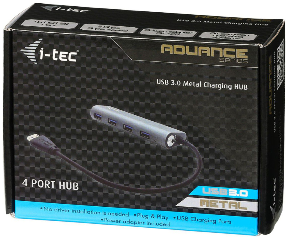 i-tec USB 3.0 Metal Charging HUB 4 Θύρες με ενσωματωμένο καλώδιο (28 cm)