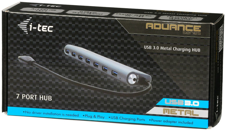 Η σειρά METAL είναι η πιο πρόσφατη σειρά προϊόντων i-tec με κομψή σχεδίαση και αποκλειστική συσκευασία i-tec USB 3.0 Metal Charging HUB είναι η τέλεια προσθήκη για οποιονδήποτε έχει ανεπαρκή αριθμό θυρών USB στο notebook, το ultrabook ή τον υπολογιστή του. αναγκάζεται να χρησιμοποιεί συνεχώς συνδέοντας και αποσυνδέοντας τις αγαπημένες σας συσκευές USB, όπως μονάδες flash, κινητά τηλέφωνα, tablet, ψηφιακές φωτογραφικές μηχανές, MP3 players, εκτυπωτές κ.λπ. Το HUB διαθέτει 7 θύρες USB 3.0 με τη λειτουργία Plug & Play και τη δυνατότητα φόρτιση μέσω USB - το HUB εντοπίζει αυτόματα τη συνδεδεμένη θύρα USB για συσκευές που απαιτούν φόρτιση. Οι θύρες USB 3.0 είναι ιδιαίτερα σημαντικές για την επίτευξη βέλτιστης μεταφοράς δεδομένων από μονάδες USB 3.0 και κάρτες μνήμης flash, με τις περισσότερες από αυτές να επιτυγχάνουν υψηλές ταχύτητες μεταφοράς σκληρούς δίσκους ή για τη σύνδεση συσκευών υψηλής κατανάλωσης που τροφοδοτούνται απευθείας από τη θύρα USB δεν απαιτεί εγκατάσταση προγράμματος οδήγησης. Απλώς συνδέστε το καλώδιο USB στη συσκευή και τον υπολογιστή και ξεκινήστε να εργάζεστε αμέσως. Το HUB διαθέτει ενσωματωμένη προστασία από υπερτάσεις σε περίπτωση βραχυκυκλώματος σε περιφερειακές συσκευές. Η συσκευή είναι συμβατή με USB 2.0 / 1.1 Οι συμπαγείς διαστάσεις και το μικρό βάρος καθιστούν το HUB ιδανικό αξεσουάρ για άτομα που χρησιμοποιούν φορητό υπολογιστή ενώ ταξιδεύουν σε περίπτωση προβλημάτων με την εγκατάσταση, άλλων τεχνικών δυσκολιών ή δυσλειτουργίας της συσκευής στην καρτέλα FAQ .