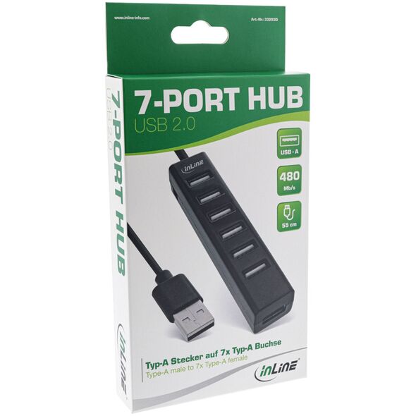 HUB USB InLine InLine® USB 2.0 7-Port Hub, Type-A male to 7x Type-A female, black