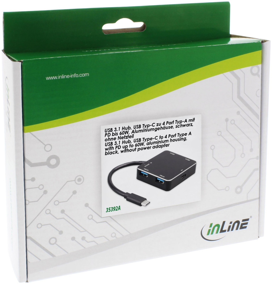 HUB USB InLine InLine® USB 3.1 Hub, USB Type C to 4 Port Type A with PD up to 60W, aluminium housing, black, without power supply unit