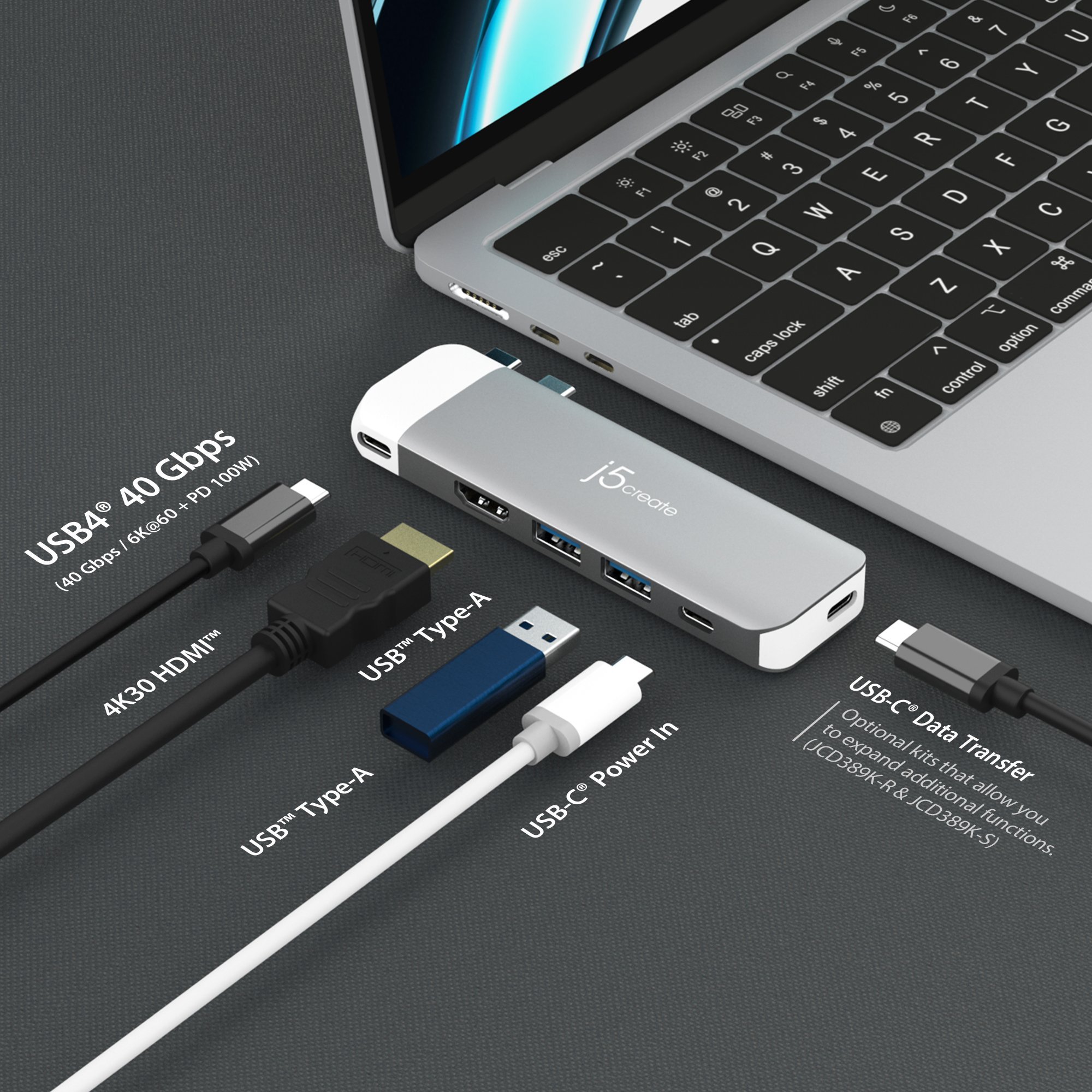 HUB USB j5create j5create JCD394-N διανομείς και συγκεντρωτές 2 x USB 3.2 Gen 2 (3.1 Gen 2) Type-C 5000 Mbit/s Γκρι, Λευκό