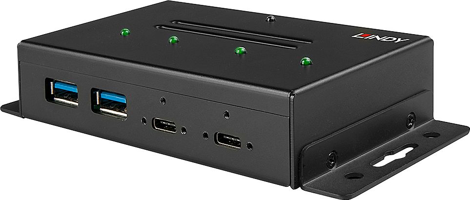 Το Lindy 4 Port USB 3.1 Metal Hub έχει σχεδιαστεί για να παρέχει αξιόπιστη απόδοση σε απαιτητικά λειτουργικά περιβάλλοντα με ταχύτητες USB 3.1 Gen 2 έως και 10 Gbps. Αυτός ο κόμβος βιομηχανικής ποιότητας διαθέτει ένα στιβαρό, εξ ολοκλήρου μεταλλικό περίβλημα για εξαιρετική προστασία ηλεκτρομαγνητικής συμβατότητας. Με ένα συμπαγές μεταλλικό περίβλημα και ενσωματωμένους βραχίονες στήριξης, αυτός ο κόμβος είναι μια ιδανική λύση για βιομηχανικά περιβάλλοντα. Όλες οι θύρες Type-C στον διανομέα δέχονται καλώδια USB 3.1 με μία ή δύο βίδες που συμμορφώνονται με την προδιαγραφή κλειδώματος USB-IF Type-C.