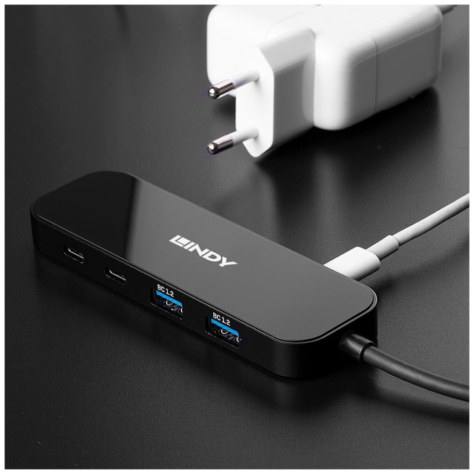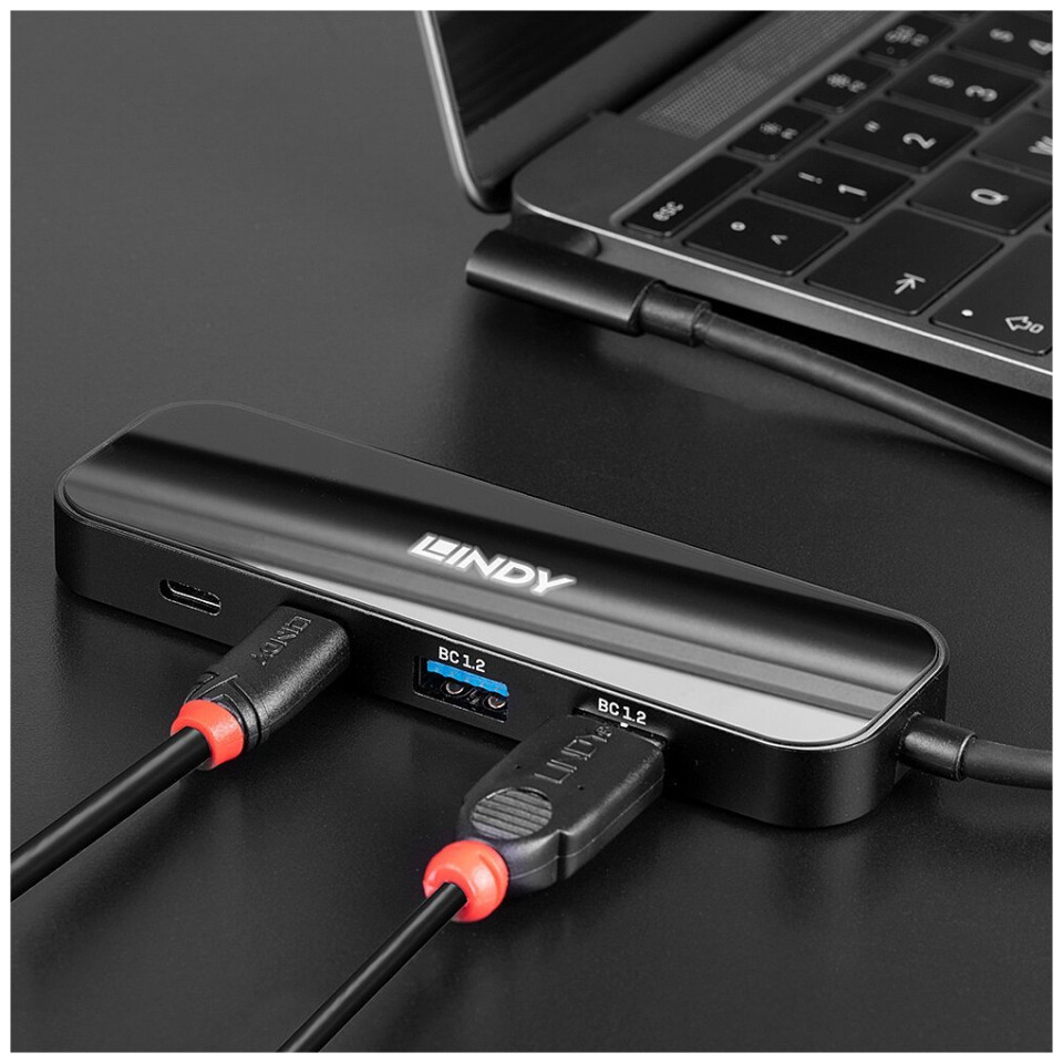 Lindy 43334. Interfejs hosta: USB 3.2 Gen 2 (3.1 Gen 2) Type-C, Interfejsy hub: USB 3.2 Gen 2 (3.1 Gen 2) Type-A, USB 3.2 Gen 2 (3.1 Gen 2) Type-C. Realna szybkość przesyłania danych: 10000 Mbit/s, Kolor produktu: Czarny, Materiał obudowy: Kopolimer akrylonitrylo-butadieno-styrenowy (ABS), Aluminium, Szkło hartowane. Szerokość produktu: 110,5 mm, Głębokość produktu: 34,7 mm, Wysokość produktu: 12,1 mm. Szerokość opakowania: 174 mm, Głębokość opakowania: 20 mm, Wysokość opakowania: 194 mm. Certyfikat środowiskowy (zrównoważonego rozwoju): RoHS, Federalna Komisja Łączności (FCC), UKCA, CE, REACH