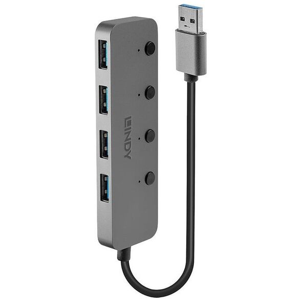 Lindy 43309. Διεπαφή κεντρικού υπολογιστή: USB 3.2 Gen 1 (3.1 Gen 1) Type-A, Διασυνδέσεις Hub: USB 3.2 Gen 1 (3.1 Gen 1) Type-A. Πραγματικός ρυθμός μεταφοράς δεδομένων: 5 Mbit/s, Χρώμα προϊόντος: Γκρι, Υλικό περιβλήματος: Συμπολυμερές ακρυλονιτριλίου-βουταδιενίου-στυρενίου (ABS), Αλουμίνιο, Πολυανθρακικό (PC). Τύπος τροφοδοτικού: USB, Τάση: 5 V. Πλάτος προϊόντος: 100 mm, Βάθος προϊόντος: 30 mm, Ύψος προϊόντος: 9 mm. Πλάτος συσκευασίας: 174 mm, Βάθος συσκευασίας: 194 mm, Ύψος συσκευασίας: 15 mm