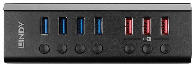 Lindy 4 Port USB 3.0 Hub with 3 Quick Charge 3.0 Ports. Interfejs hosta: USB 3.2 Gen 1 (3.1 Gen 1) Type-B, Interfejsy hub: USB 3.2 Gen 1 (3.1 Gen 1) Type-A. Realna szybkość przesyłania danych: 5000 Mbit/s, Kolor produktu: Czarny, Materiał obudowy: Kopolimer akrylonitrylo-butadieno-styrenowy (ABS), Aluminium. Typ zasilacza: Prąd przemienny, Napięcie: 12 V, Prąd wejściowy: 4.5 A. Szerokość produktu: 140 mm, Głębokość produktu: 46,6 mm, Wysokość produktu: 25,5 mm. Ilość na paczkę: 1 szt., Szerokość opakowania: 205 mm, Głębokość opakowania: 132 mm