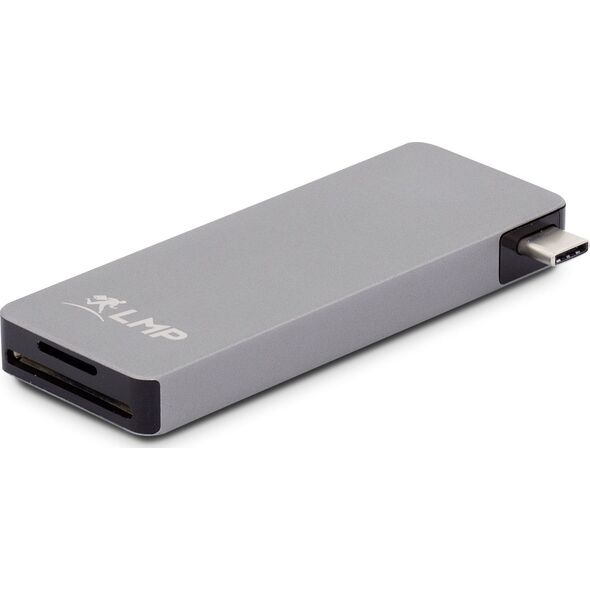 Ο συμπαγής διανομέας LMP USB-C Basic παρέχει συνδεσιμότητα σε MacBook 12 ιντσών, MacBook Air 13 ιντσών ή MacBook Pro 13 ιντσών και 15 ιντσών: 3 θύρες USB 3.0, συσκευή ανάγνωσης καρτών SD και microSD και USB-C θύρα για παροχή ενέργειας (μεταφορά ρεύματος από τροφοδοτικό USB-C σε φορητό υπολογιστή).