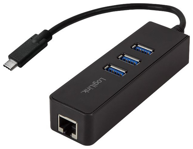 Hub με τρεις θύρες USB 3.0 και μία θύρα Gigabit Ethernet.