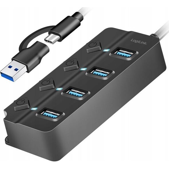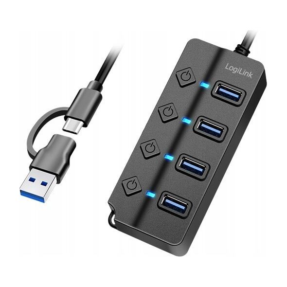 HUB USB LogiLink LogiLink USB 3.2 Gen1 Hub 4-Port Διακόπτης ενεργοποίησης/απενεργοποίησης μαύρο