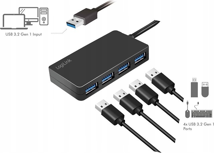 LogiLink USB HUB LogiLink USB 3.2 HUB 4 θυρών, Gen1 μαύρο