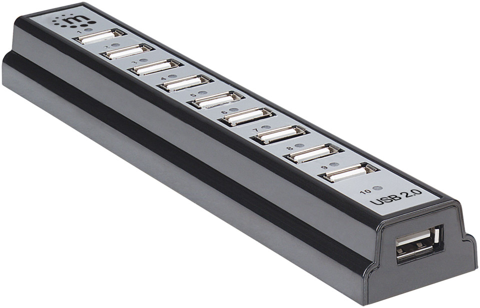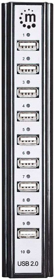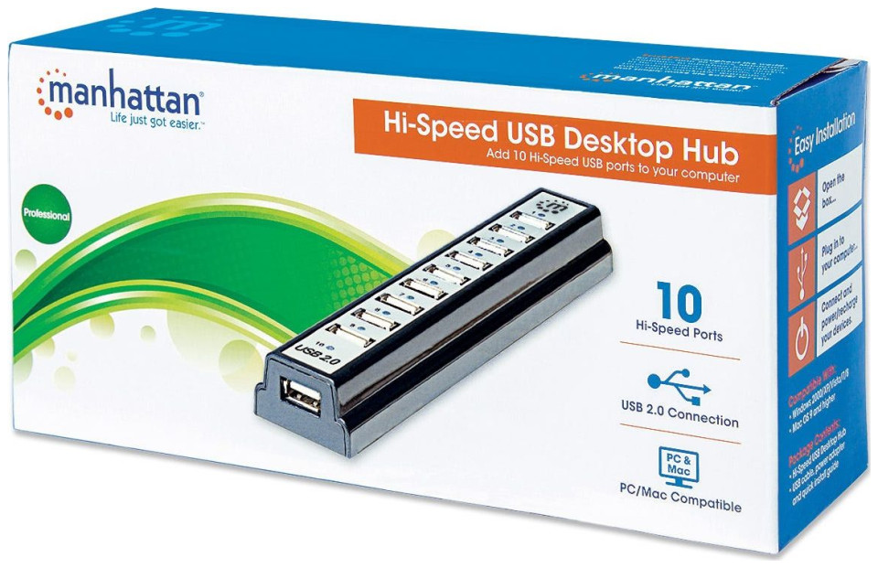 Το Manhattan Hi-Speed USB Desktop Hub επεκτείνει εύκολα την πρόσβαση USB για τον επιτραπέζιο ή φορητό υπολογιστή σας για τη σύνδεση περισσότερων περιφερειακών και φορητών συσκευών. Με 10 πρόσθετες θύρες υψηλής ταχύτητας, συμβατές προς τα πίσω, το Manhattan Hi-Speed USB Desktop Hub μπορεί να διαχειριστεί σχεδόν την αυξανόμενη συλλογή ψηφιακών συσκευών οποιουδήποτε λάτρη του USB. Είναι ιδανικό για τη φόρτιση MP3 players, κινητών τηλεφώνων, ψηφιακών φωτογραφικών μηχανών και άλλων φορητών αξεσουάρ, καθώς και για τη σύνδεση πληκτρολογίων, ποντικιών, webcam, μονάδων flash, συσκευών ανάγνωσης καρτών και άλλων. Το συμπαγές και ανθεκτικό πλαστικό περίβλημα περιλαμβάνει θύρες τροφοδοσίας και θύρες hub-to-PC στο πλαϊνό πάνελ για καλύτερη οργάνωση των συνδέσεων και ελαχιστοποίηση της ακαταστασίας των καλωδίων. Σύνδεση και αναπαραγωγή με δυνατότητα εναλλαγής, συμβατότητα με Windows 7/8.1/10 και Mac και ταχύτητες μεταφοράς δεδομένων έως και 480 Mbps βοηθούν το Manhattan Hi-Speed USB Desktop Hub να ενοποιήσει πολλούς, λιγότερο ισχυρούς διανομείς σε μια ενιαία λύση USB.