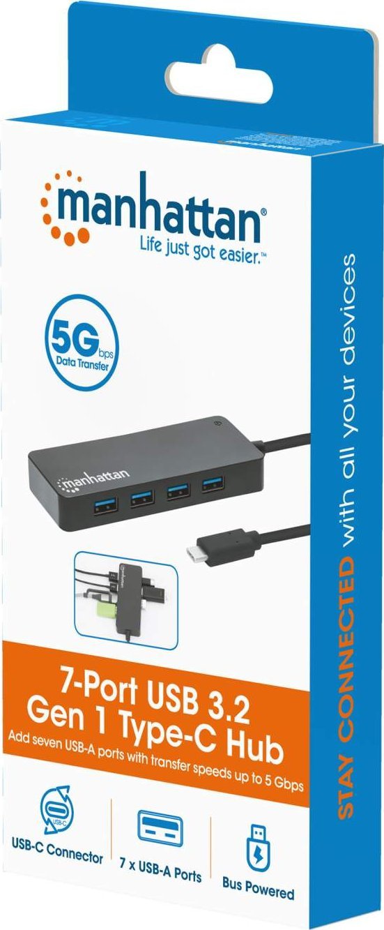 HUB USB Manhattan Manhattan 168410 διανομείς και συγκεντρωτές USB Type-C 5000 Mbit/s Μαύρο