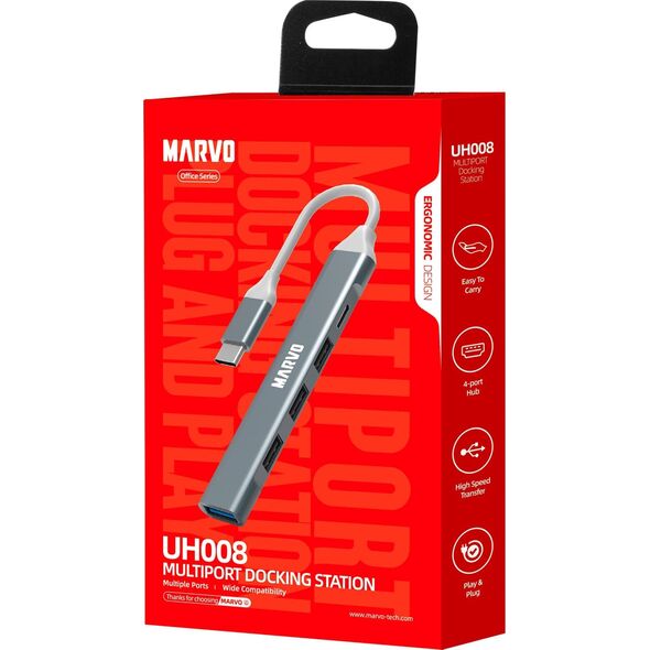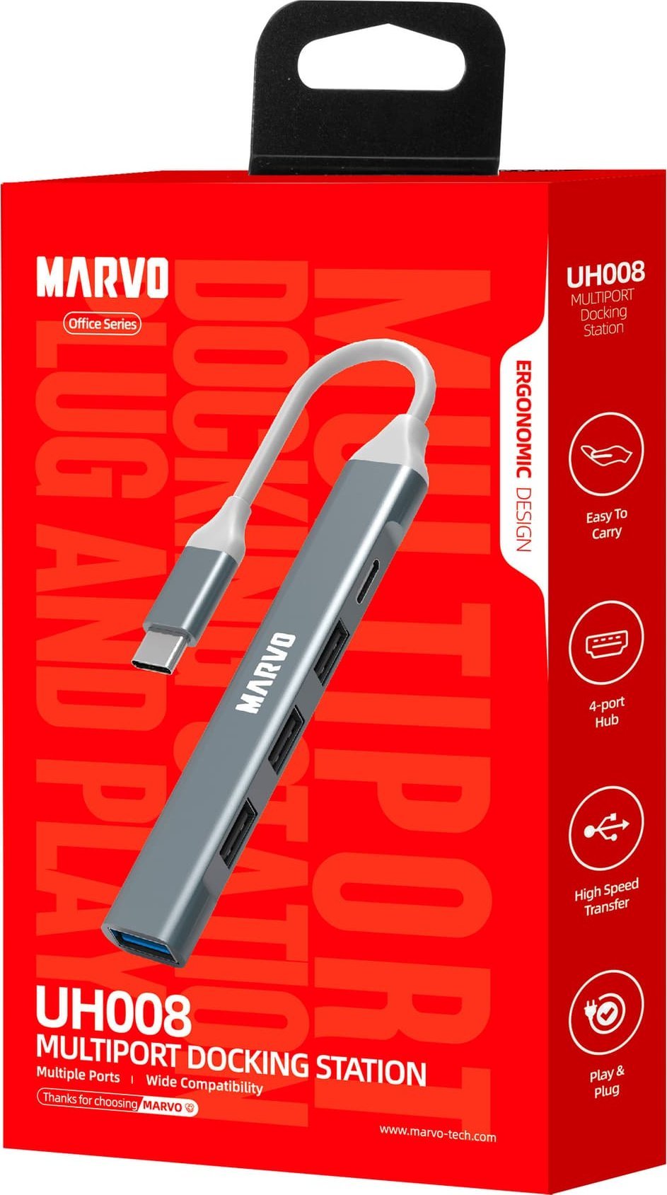 HUB USB Marvo USB (3.0) hub 5-port, UH008, μεταλλικός, Marvo