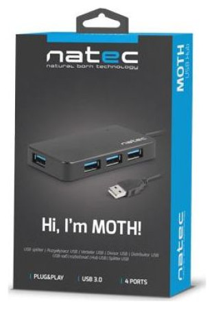 Το USB HUB MOTH είναι μια ιδανική λύση για φορητούς υπολογιστές και υπολογιστές, επιτρέποντάς σας να αυξήσετε τον αριθμό των διαθέσιμων θυρών USB. Οι ενσωματωμένες 4 θύρες USB 3.0 παρέχουν μεταφορά δεδομένων με μέγιστη ταχύτητα 5 Gb/s