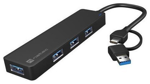HUB USB Natec Mayfly 4xUSB 3.0 czarny USB-C + Adapter USB-A (NHU-2023)