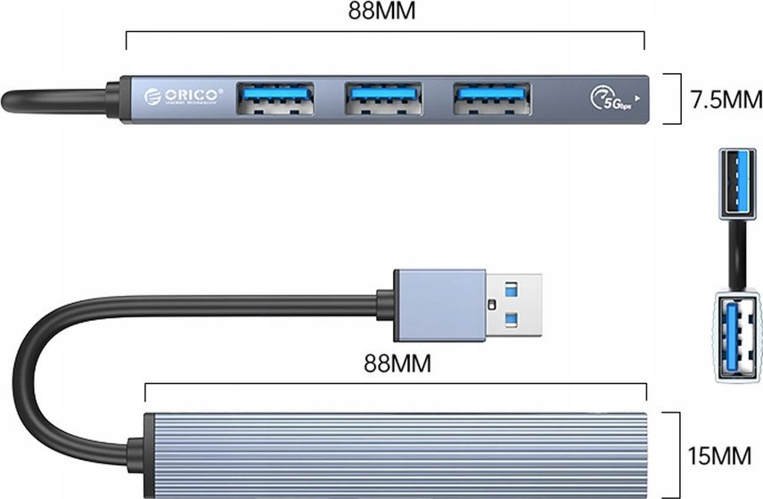HUB USB Orico Orico Hub USB 5Gbps 1*USB-A 3.1, 3*USB-A 2.0, αλουμινένιο