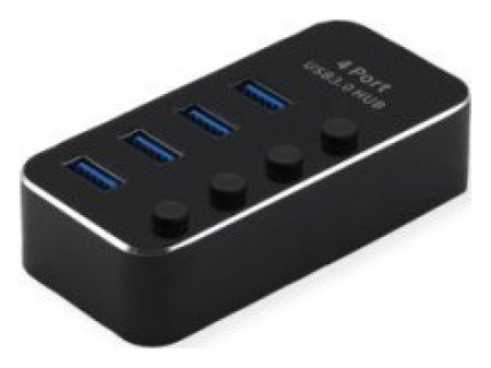 HUB USB Roline USB 3.2 Gen 1 για φορητούς υπολογιστές Roline, 4 θύρες, μεμονωμένα ελεγχόμενες, μαύρο