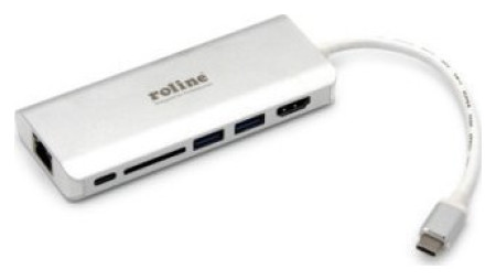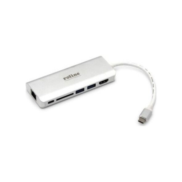 HUB USB Roline Σταθμός σύνδεσης Roline USB τύπου C, HDMI 4K, USB 3.0 / USB 3.2 Gen 1, SD/MicroSD, Gigabit Ethernet