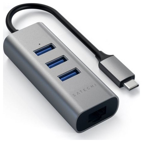 ALUMINIOWY HUB TYPU-C 2-IN-1 Z ETHERNETEM Szybki port Ethernet obsługuje przepustowość 10/100/1000 Mb/s, zapewniając szybkie połączenia, ważne w przypadku udostępniania plików, pobierania, przesyłania strumieniowego, filmów internetowych i innych. Dodano 3 porty USB 3.0 do szybkiego przesyłania danych i szybkiego dostępu do urządzeń USB-A. Dopasuj hub do swojego komputera Aluminiowe wykończenie huba stanowi dopełnienie nowoczesnego biurka, które zapewnia elegancki i ponadczasowy wygląd. Szybkie rozwiązanie sieciowe Oszczędzaj na drogich kartach sieciowych i po prostu używaj adaptera Ethernet z dowolnym kompatybilnym portem USB. Włączaj gigabitowe połączenie sieciowe Ethernet na komputerze stacjonarnym lub notebooku. Światło LED Hub wyposażony jest w wygodne światło LED, które wskazuje, kiedy urządzenie jest zasilane. Po prostu podłącz złącze Type-C do portu USB-C laptopa i podłącz urządzenia USB.