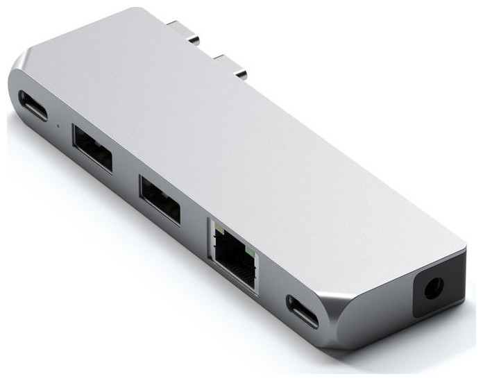HUB USB Satechi Adapter HUB Satechi Pro Hub mini με διπλό USB-C για Apple MacBook (2xUSB-C, 2x USB-A, Ethernet, θύρα jack) (ασημί)