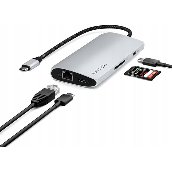 HUB USB Satechi Adapter Satechi USB-C Multiport 8K USB-C / USB-C, HDMI, 3xUSB-A 3.2 Gen 2 10Gbps, USB-A 3.2 Gen 1 5Gbps, SD/TF silver