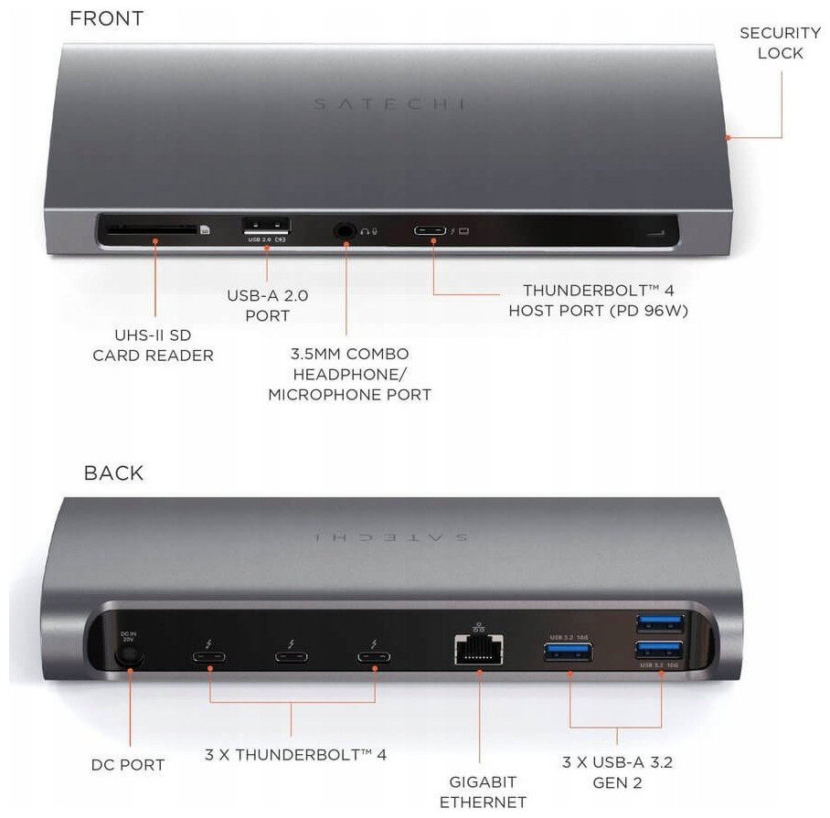 HUB USB Satechi SATECHI Thunderbolt 4 Dock Space Gray | MacBook Pro