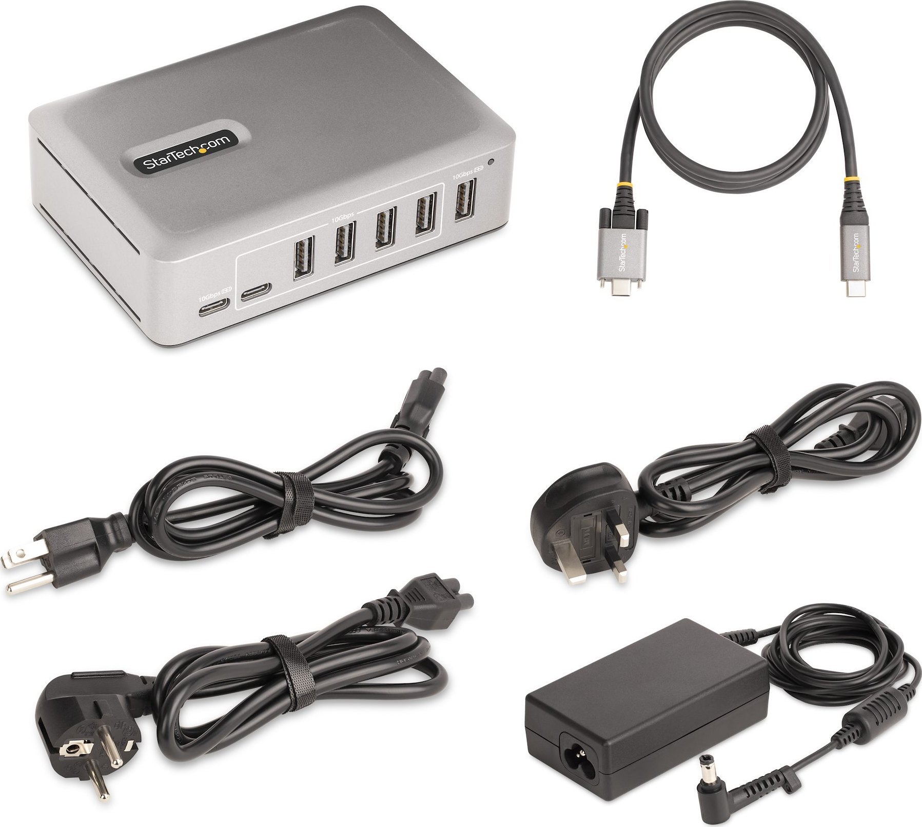 StarTech.com 10G5A2CS-USB-C-HUB. Διεπαφή κεντρικού υπολογιστή: USB 3.2 Gen 2 (3.1 Gen 2) Type-C, Διασυνδέσεις Hub: USB 3.2 Gen 2 (3.1 Gen 2) Type-A, USB 3.2 Gen 2 (3.1 Gen 2) Type-C. Πραγματικός ρυθμός μεταφοράς δεδομένων: 10000 Mbit/s, Χρώμα προϊόντος: Ασημί, LED: Κατάσταση. Τύπος τροφοδοσίας: DC, Κατανάλωση ισχύος: 65 W, Τάση: 100 - 240 V. Πλάτος προϊόντος: 80 mm, Βάθος προϊόντος: 115 mm, Ύψος προϊόντος: 30 mm. Πλάτος συσκευασίας: 170 mm, Βάθος συσκευασίας: 225 mm, Ύψος συσκευασίας: 93 mm