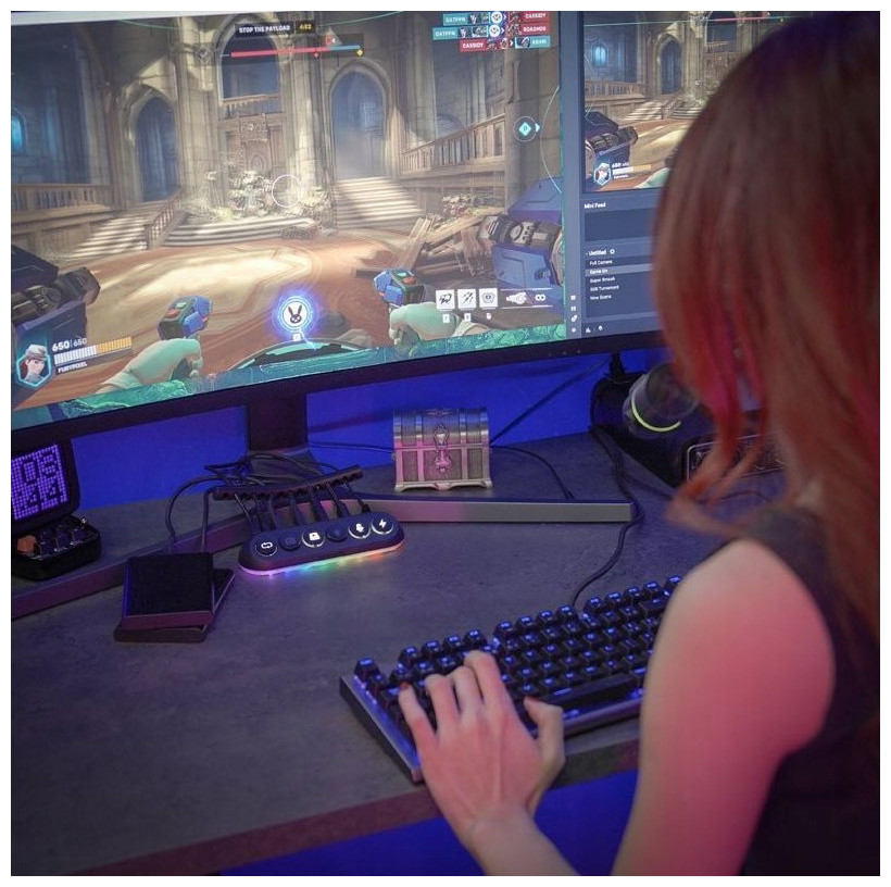 Κωδικός καταστήματος: 425x445 Καλά οργανωμένο και πάντα συνδεδεμένο Το Streamplify HUB DECK είναι ένας διανομέας USB με 5 θύρες USB με φωτισμό RGB και μεμονωμένα κουμπιά ενεργοποίησης/απενεργοποίησης για κάθε θύρα USB. Με τέσσερις θύρες USB 3.0 και μία θύρα γρήγορης φόρτισης USB-2.0, μπορείτε να συνδέσετε πολλές συσκευές ταυτόχρονα. Επιλέξτε από 7 εναλλάξιμα πλήκτρα για να προσαρμόσετε την αισθητική ώστε να ταιριάζει στις μοναδικές προτιμήσεις και το στυλ σας. Προσθέστε στυλ στο σύστημά σας με λειτουργίες φωτισμού RGB που μπορούν να ελεγχθούν μέσω του ενσωματωμένου κουμπιού. Σχεδιασμένα με γνώμονα την ποιότητα και την ανθεκτικότητα, τα πλήκτρα με οπίσθιο φωτισμό επιτρέπουν στα LED να λάμπουν. Επιλέξτε από 7 εναλλάξιμα πλήκτρα για να προσαρμόσετε το διανομέα USB για να ταιριάζει στις μοναδικές προτιμήσεις και το στυλ σας Αποτελεσματική διαχείριση καλωδίων Κάθε θύρα USB έχει το δικό της κουμπί λειτουργίας που μπορείτε να χρησιμοποιήσετε για να την ενεργοποιήσετε και να την απενεργοποιήσετε ανά πάσα στιγμή. Οι ενδείξεις LED των συνδεδεμένων συσκευών δείχνουν αμέσως εάν η θύρα USB είναι ενεργή ή όχι. Συνδέστε συσκευές υψηλής ισχύος, όπως εξωτερικούς σκληρούς δίσκους ή λάμπες απευθείας στον διανομέα ως πηγή ενέργειας. Το HUB CTRL 5 διαθέτει τροφοδοτικό 12V/2A, 24W με υψηλή ισχύ εξόδου και παρέχει ταυτόχρονη λειτουργία πολλαπλών συσκευών χωρίς απώλεια ισχύος ή συνδεσιμότητας. Περιλαμβάνεται ένα εύκαμπτο στήριγμα καλωδίου με ενσωματωμένα κλιπ διαχείρισης καλωδίων για να διατηρείτε τα καλώδια σας τακτοποιημένα και ασφαλή. Δεν χρειάζεται να εγκαταστήσετε προγράμματα οδήγησης ή λογισμικό. Απλώς συνδέστε το HUB απευθείας από το κουτί και είναι έτοιμο. Οι θύρες USB 3.0 έχουν σχεδιαστεί σύμφωνα με το τυπικό πρωτόκολλο UVC/UVA, καθιστώντας τις συμβατές με σχεδόν οποιαδήποτε συσκευή Προδιαγραφή: Υλικό: πλαστικό Χρώμα: Μαύρο Συνδεσιμότητα: 4x USB 3.0 (USB 3.2 Gen 1, μέγ. 5 Gb/s) 1x USB. 2.0 (μέγ. 480 Mbit/s, υποστηρίζει QuickCharge) Μήκος καλωδίου USB: 1,8 m Τροφοδοσία: 12V/2A, 24W