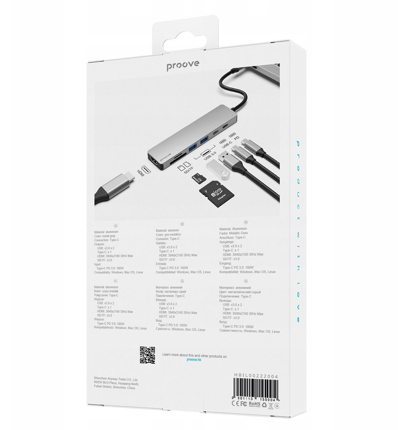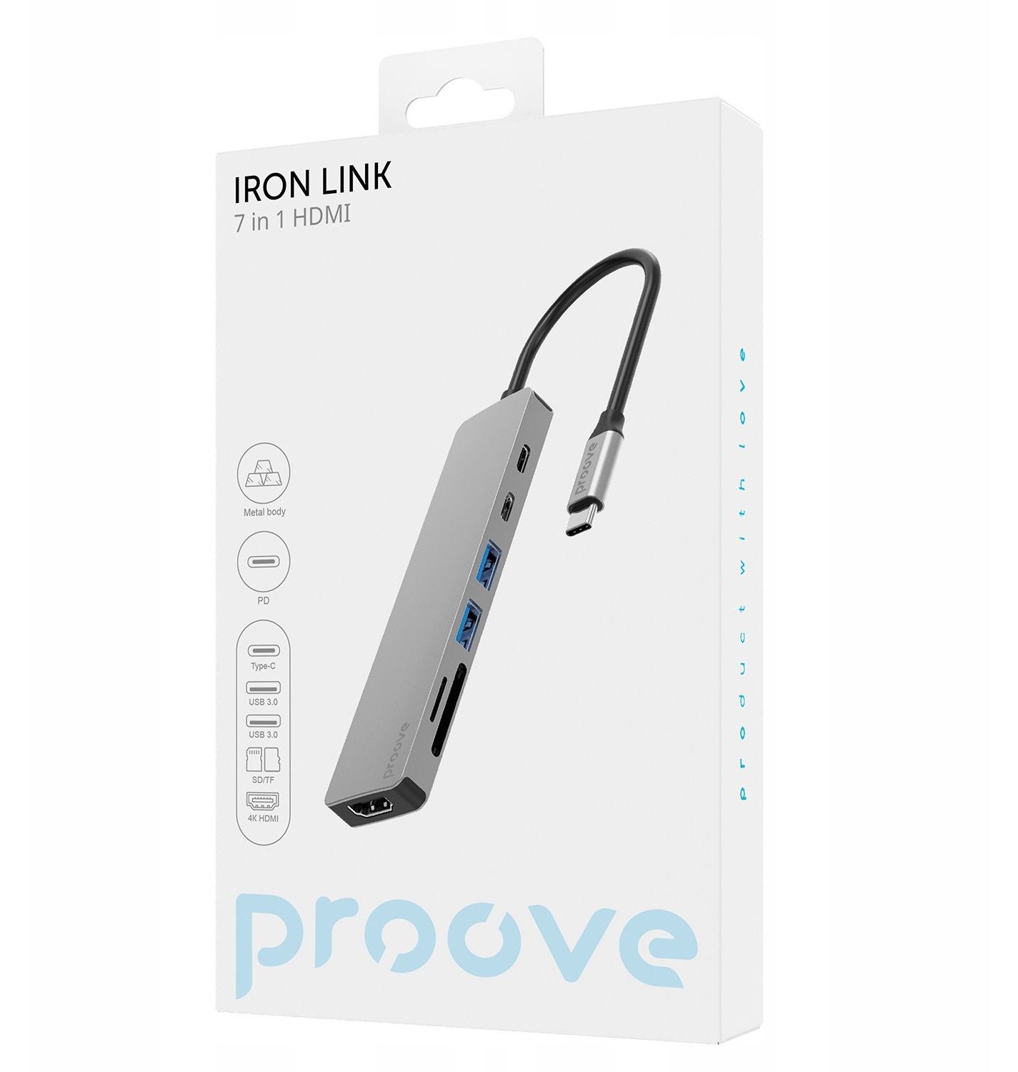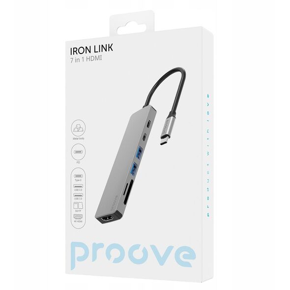 Hub Usb Type-c 7σε1 Hdmi Υποδοχή Κάρτας Sd Microsd 2x Usb 3.0 2x Usb-c Pd PROOVE / Hbil00222004 / Iron Link