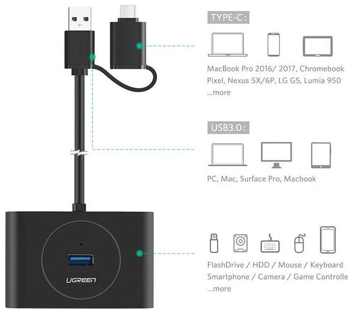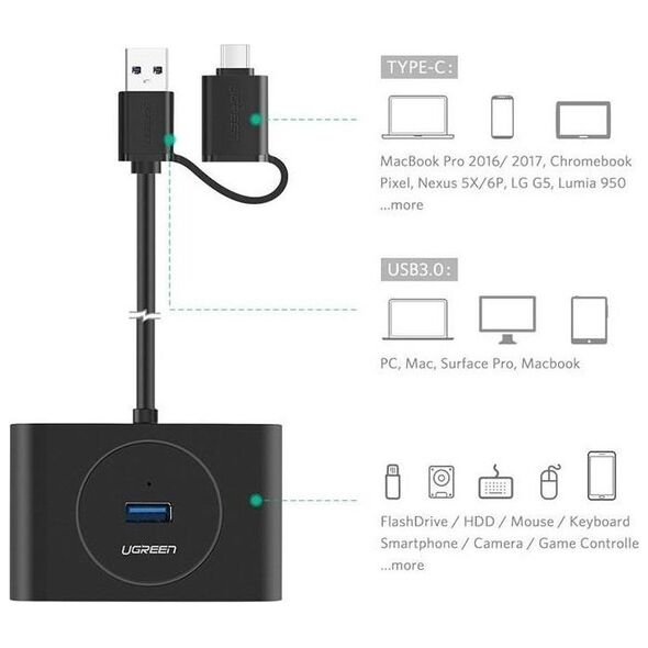 Ugreen USB HUB 4x USB-A 3.0 (UGR078)Ugreen USB HUB 4x USB-A 3.0 (UGR078)