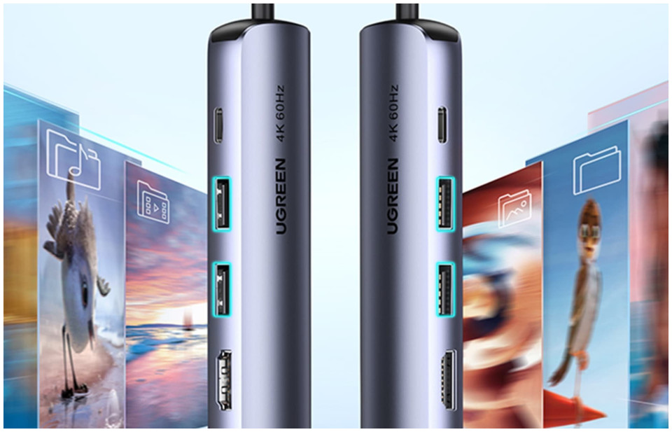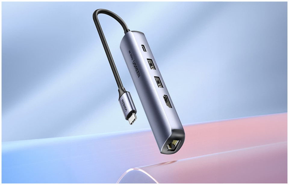 HUB USB Ugreen Hub / Adapter Ugreen Revodok CM418 USB-C σε 2x USB, HDMI 4K 30 Hz, RJ45 1Gbps, PD 100W (γκρι)