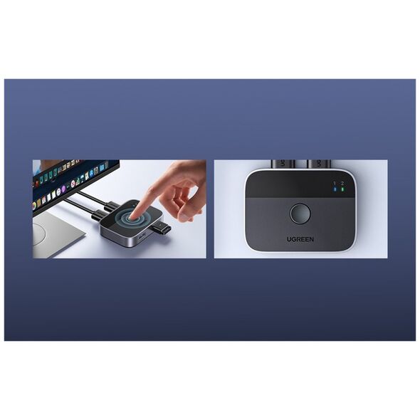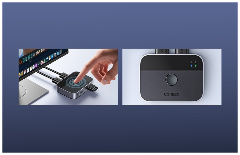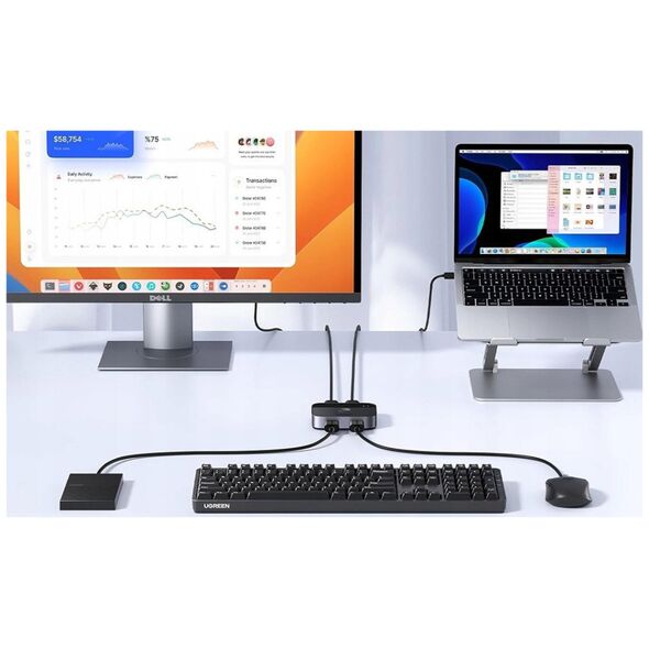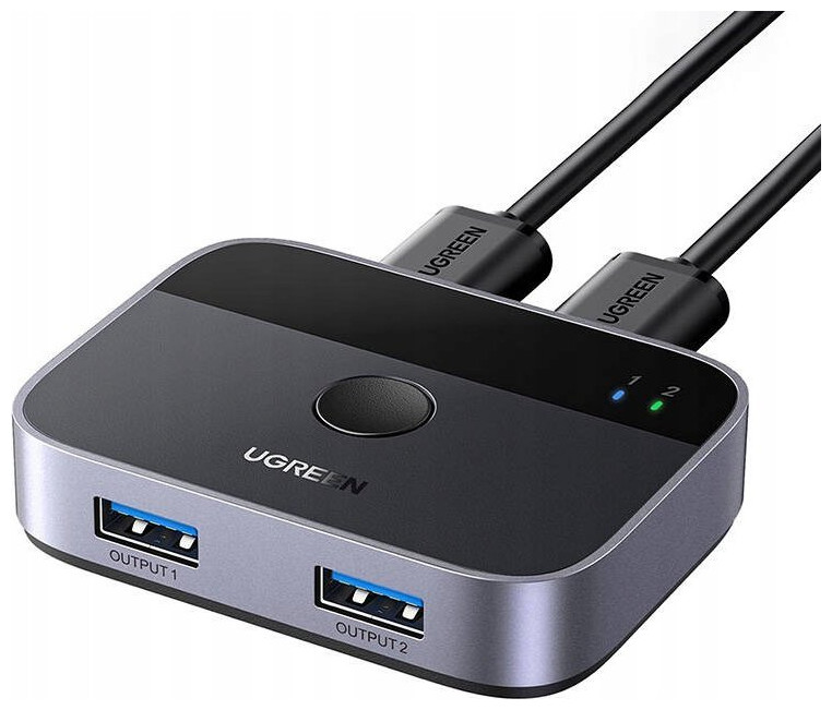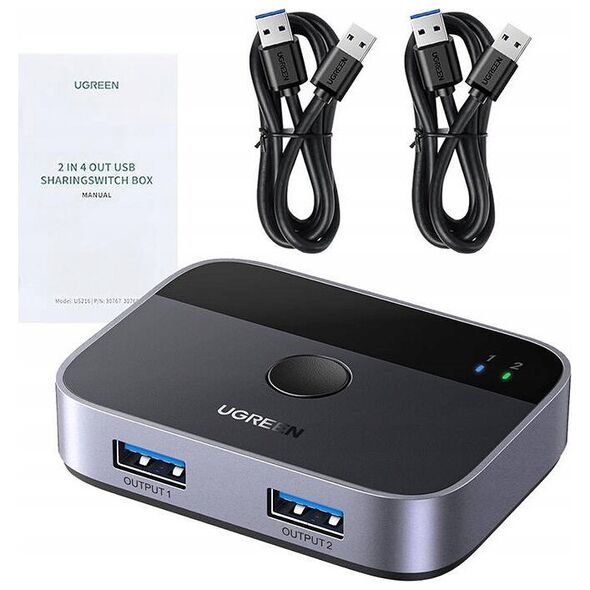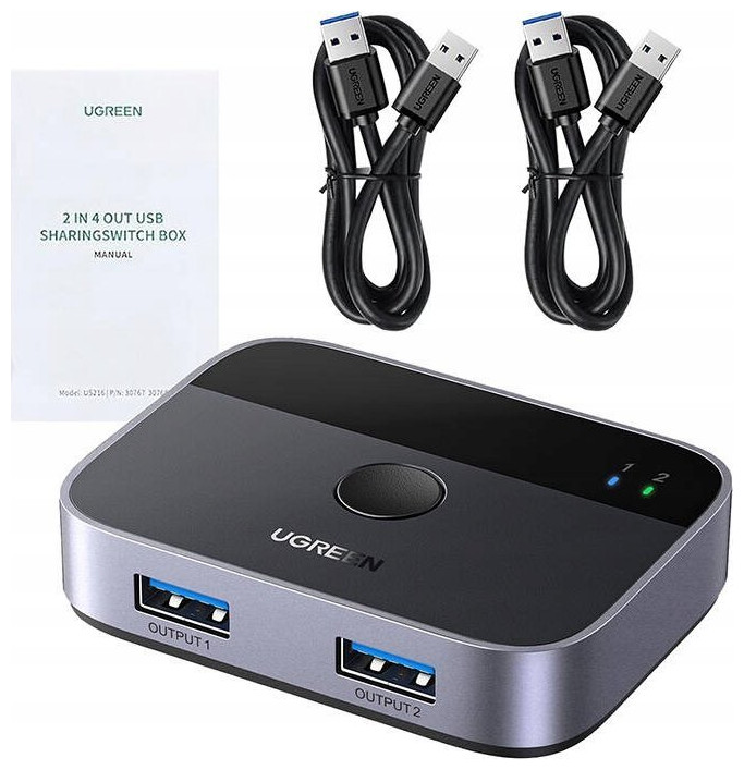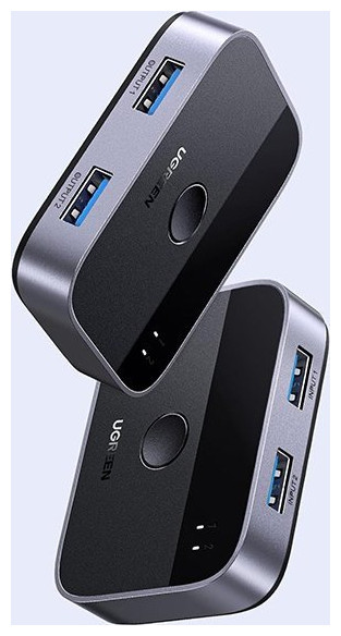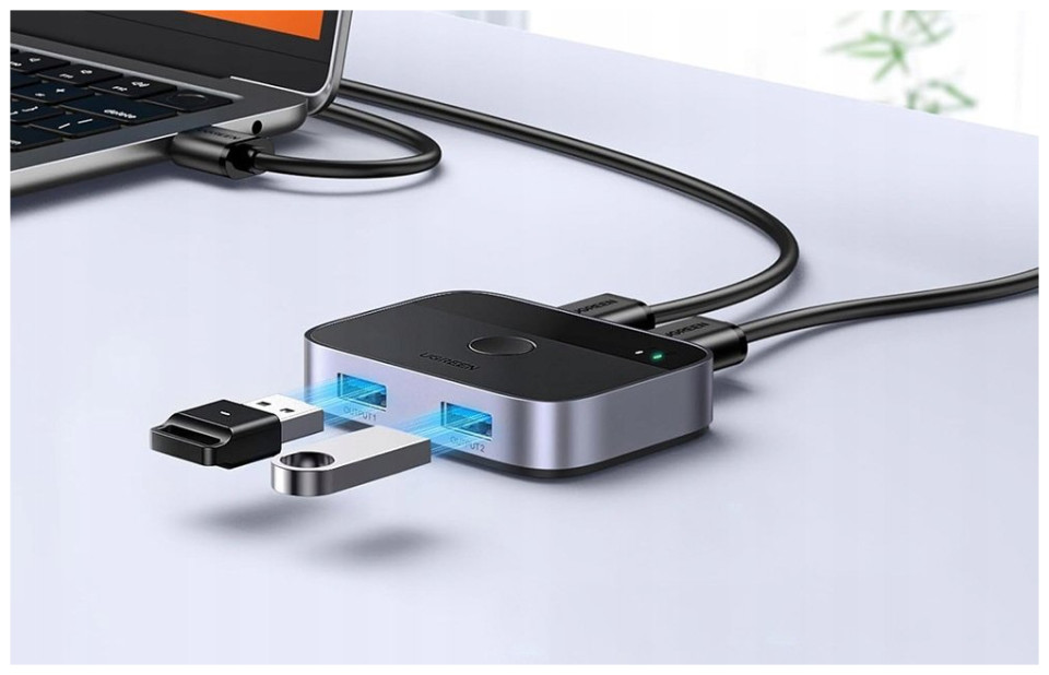 The USB 3.0 Switch Ugreen CM757 is a versatile device that allows you to conveniently switch between two computers sharing two USB devices. It is ideal for efficient management of multiple peripherals in a work or home office environment. Note: please note that the switch is not a KVM device and does not support monitors or video transfer - the USB OUT port is for data transfer only.