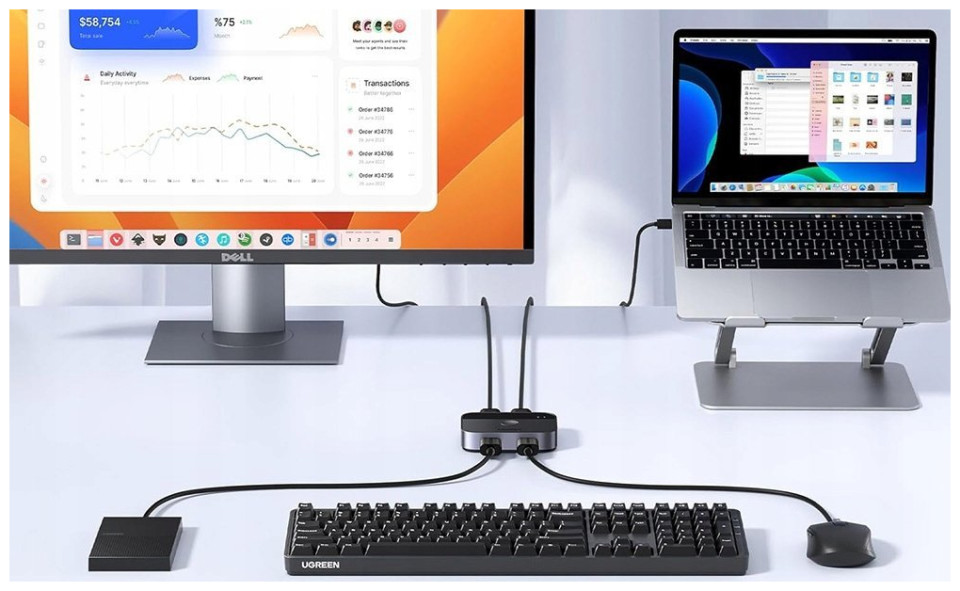 Ugreen The CM757 allows you to share two USB devices, such as keyboards, mice, printers or webcams, between two computers. This allows you to quickly and easily switch between your business computer and personal laptop, increasing your productivity and comfort.