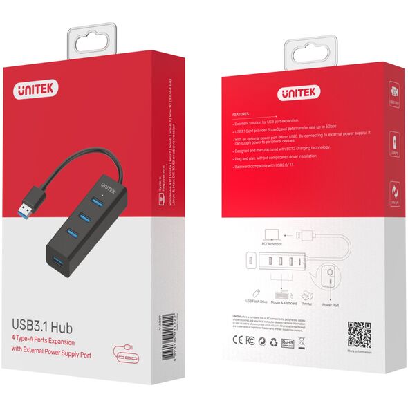 Ο κόμβος χρησιμοποιεί τεχνολογία SuperSpeed USB 3.0 παρέχοντας ταχύτητες μεταφοράς έως και 5Gb/s. Η αντιγραφή ενός βίντεο δεν διαρκεί περισσότερο από 9 δευτερόλεπτα. Χάρη στην τεχνολογία Hot swapp/Plug&play, η χρήση της είναι απίστευτα εύκολη - δεν χρειάζεται να εγκαταστήσετε κανένα πρόγραμμα οδήγησης. Απλώς το συνδέετε στον υπολογιστή σας και πηγαίνετε. Είναι συμβατό με Windows XP, Vista, 7, 8, 8.1, 9 και 10, υπολογιστές Linux, Mac 9.0 και μεταγενέστερες εκδόσεις. Αυτό το μοντέλο έχει ενσωματωμένο καλώδιο μήκους 30 cm. Όπως πολλά άλλα μοντέλα Unitek hub, αυτό έχει συμπαγείς διαστάσεις ώστε να χωράει σε κάθε τσάντα φορητού υπολογιστή.{Αριθμός θυρών USB-A} 4 . {Αριθμός θυρών USB-A} 4 . {Αριθμός θυρών USB-A} 4 . {Αριθμός θυρών USB-A} 4 . {Αριθμός θυρών USB-A} 4 . {Αριθμός θυρών USB-A} 4 . {Additional ports} 1x microUSB. {Additional ports} 1x microUSB. {Additional ports} 1x microUSB. {Additional ports} 1x microUSB. {Additional ports} 1x microUSB. {Additional ports} 1x microUSB. {Type} Ενεργό (απαιτεί επιπλέον τροφοδοτικό) . {Type} Ενεργό (απαιτεί επιπλέον τροφοδοτικό) . {Type} Ενεργό (απαιτεί επιπλέον τροφοδοτικό) . {Type} Ενεργό (απαιτεί επιπλέον τροφοδοτικό) . {Type} Ενεργό (απαιτεί επιπλέον τροφοδοτικό) . {Type} Ενεργό (απαιτεί επιπλέον τροφοδοτικό) . {Type} Standard . {Type} Standard . {Type} Standard . {Type} Standard . {Type} Standard . {Type} Standard . {Χρώμα} Μαύρο. {Χρώμα} Μαύρο. {Χρώμα} Μαύρο. {Χρώμα} Μαύρο. {Χρώμα} Μαύρο. {Χρώμα} Μαύρο. {Ταχύτητα μετάδοσης δεδομένων} 5 Gb/s. {Ταχύτητα μετάδοσης δεδομένων} 5 Gb/s. {Ταχύτητα μετάδοσης δεδομένων} 5 Gb/s. {Ταχύτητα μετάδοσης d
