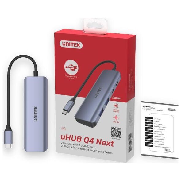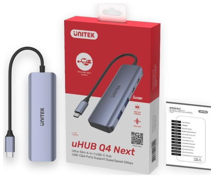 Ο διανομέας 4 σε 1 είναι μια χρήσιμη προσθήκη στα σύγχρονα ultrabook όπου ο αριθμός των θυρών είναι ανεπαρκής για τις ανάγκες μας. Χάρη σε αυτό, μπορείτε να συνδέσετε έως και τέσσερις επιπλέον περιφερειακές συσκευές, όπως ποντίκι, tablet γραφικών ή ακόμα και εξωτερικές μονάδες δίσκου. Υπάρχουν δύο θύρες USB-C και USB-A στη διάθεσή σας, αλλά σε αντίθεση με τους περισσότερους διανομείς, η θύρα USB-C δεν προορίζεται μόνο για τη φόρτιση της συσκευής - μπορείτε να τη χρησιμοποιήσετε για να συγχρονίσετε δεδομένα ή να φορτίσετε το smartphone σας.