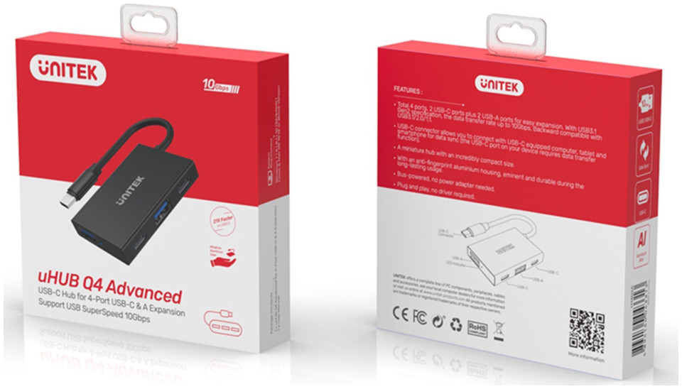 Ο διανομέας USB 3.1 είναι μια εξαιρετική προσθήκη στα σύγχρονα ultrabook, τα οποία έχουν περιοριστεί σε πολλές χρήσιμες θύρες για εξοικονόμηση χώρου. Ο διανομέας διαθέτει δύο θύρες USB-A και δύο θύρες USB-C. Μπορείτε να συνδέσετε περιφερειακές συσκευές μέσω αυτών, π.χ. ποντίκι, εξωτερική μονάδα δίσκου, pendrive, tablet γραφικών κ.λπ. Λειτουργεί με επιτραπέζιους υπολογιστές, φορητούς υπολογιστές, tablet και smartphone με USB-C.