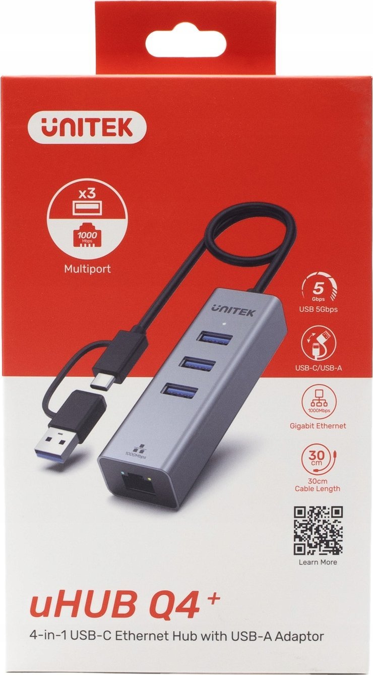 HUB USB Unitek Unitek Hub USB C 4 σε 1 Ethernet 3 x USB A 5 Gbps με αντάπτορα USB A
