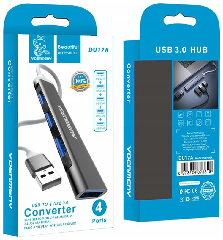 HUB USB Vega HUB USB 4XUSB DENMEN ΜΑΥΡΟ ΑΛΟΥΜΙΝΙΟ DU17>