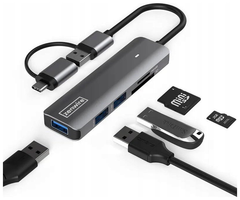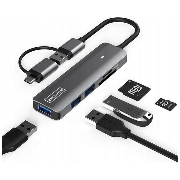 HUB USB Zenwire HUB USB-C 7W1 3x USB 3.0 Αναγνώστης Καρτών SD TF COMBO Zenwire