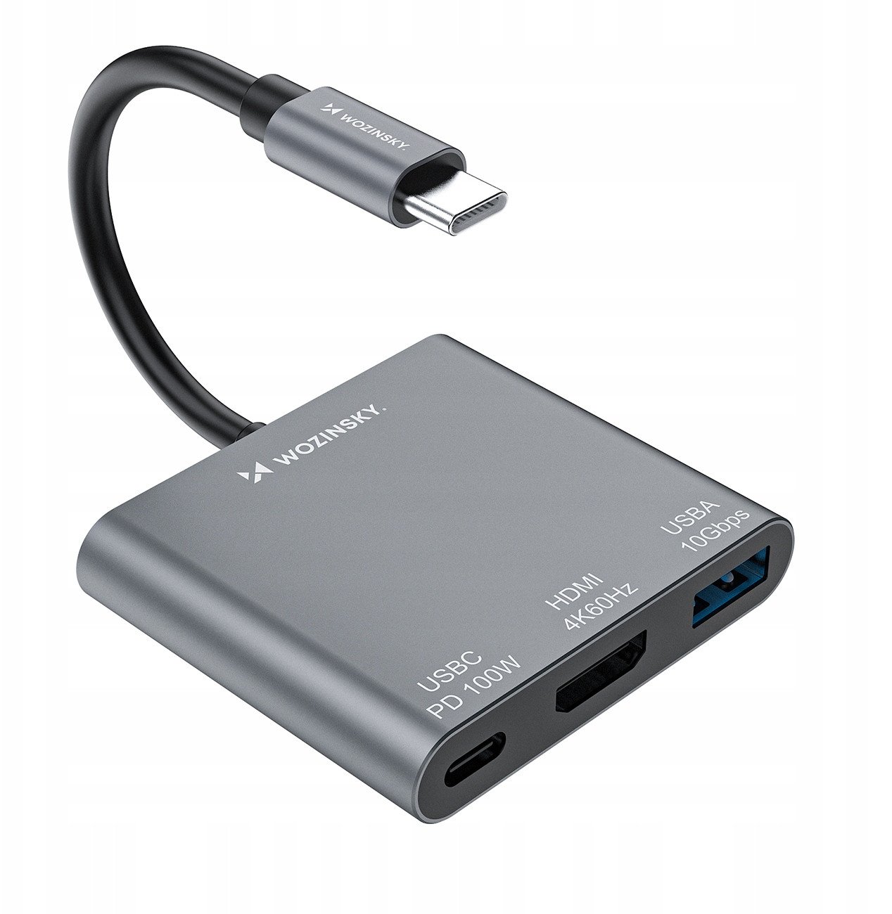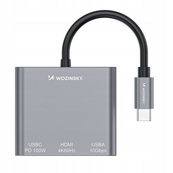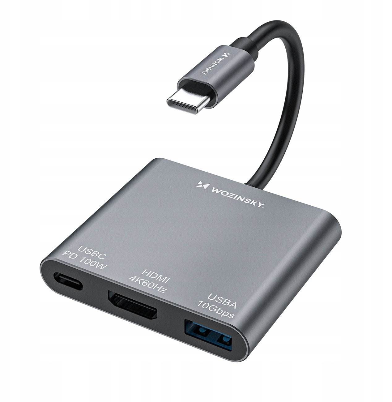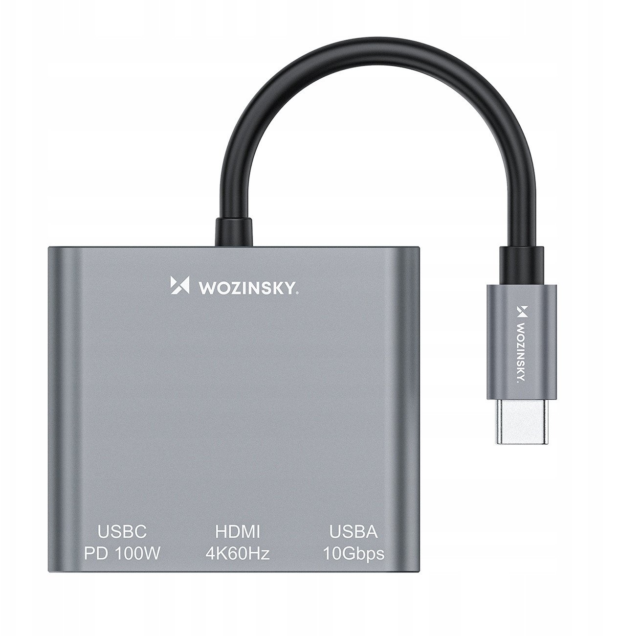 Hub Wozinsky WHCH-01 USB-C PD 100W HDMI 4K@30Hz USB-A 10Gbps - szary