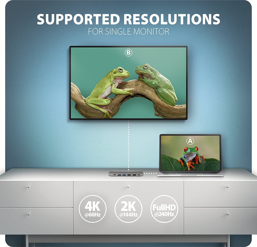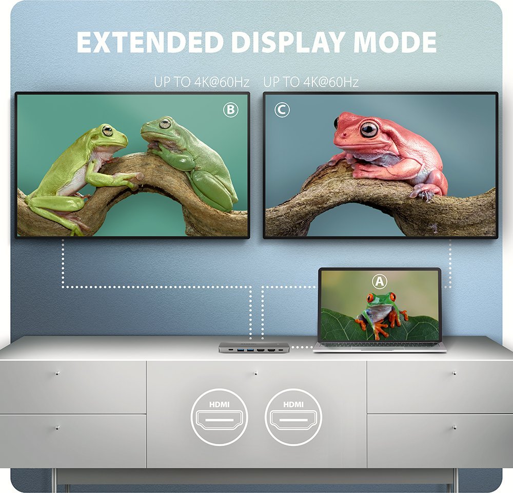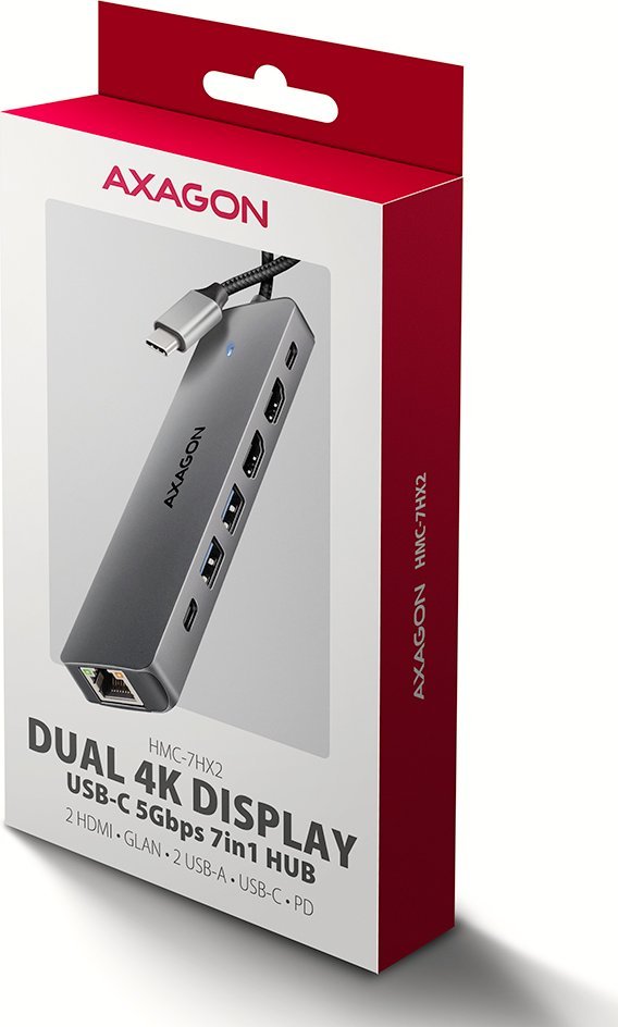 ML Axagon HMC-7HX2 Πολυλειτουργικός διανομέας USB 7 σε 1, 5Gbps, 2x USB-A, 1x USB-C, 2x HDMI 4K/60Hz, GLAN, PD 100W, 15cm USB-C καλώδιο